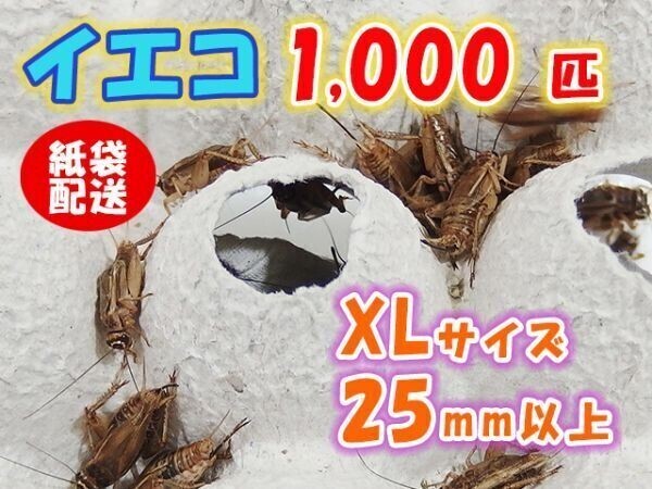 ヨーロッパイエコオロギ イエコ 成虫 XL サイズ 20mm以上 紙袋配送 1000匹 生餌 死着保証10% 爬虫類 両生類 トカゲ カエル [3717:gopwx2]