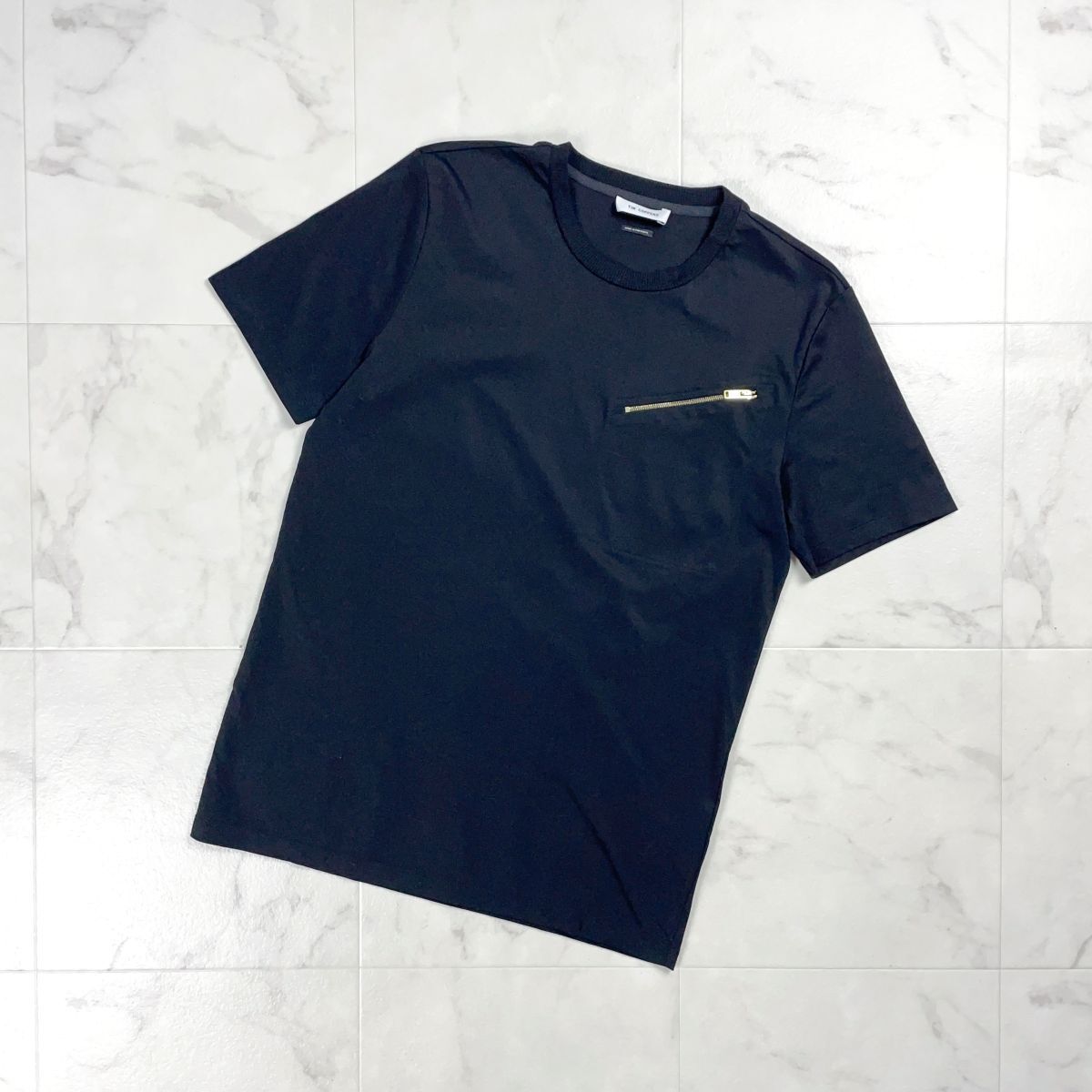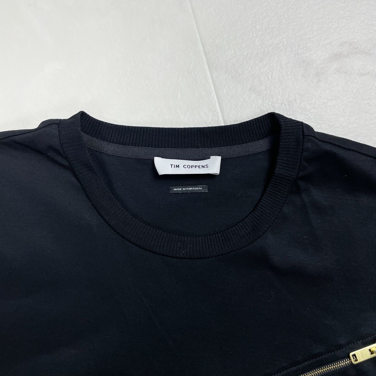 美品 TIM COPPENS ティムコッペンズ ジップデザイン クルーネックTシャツ 半袖 トップス メンズ ブラック 黒 サイズS*GD1070