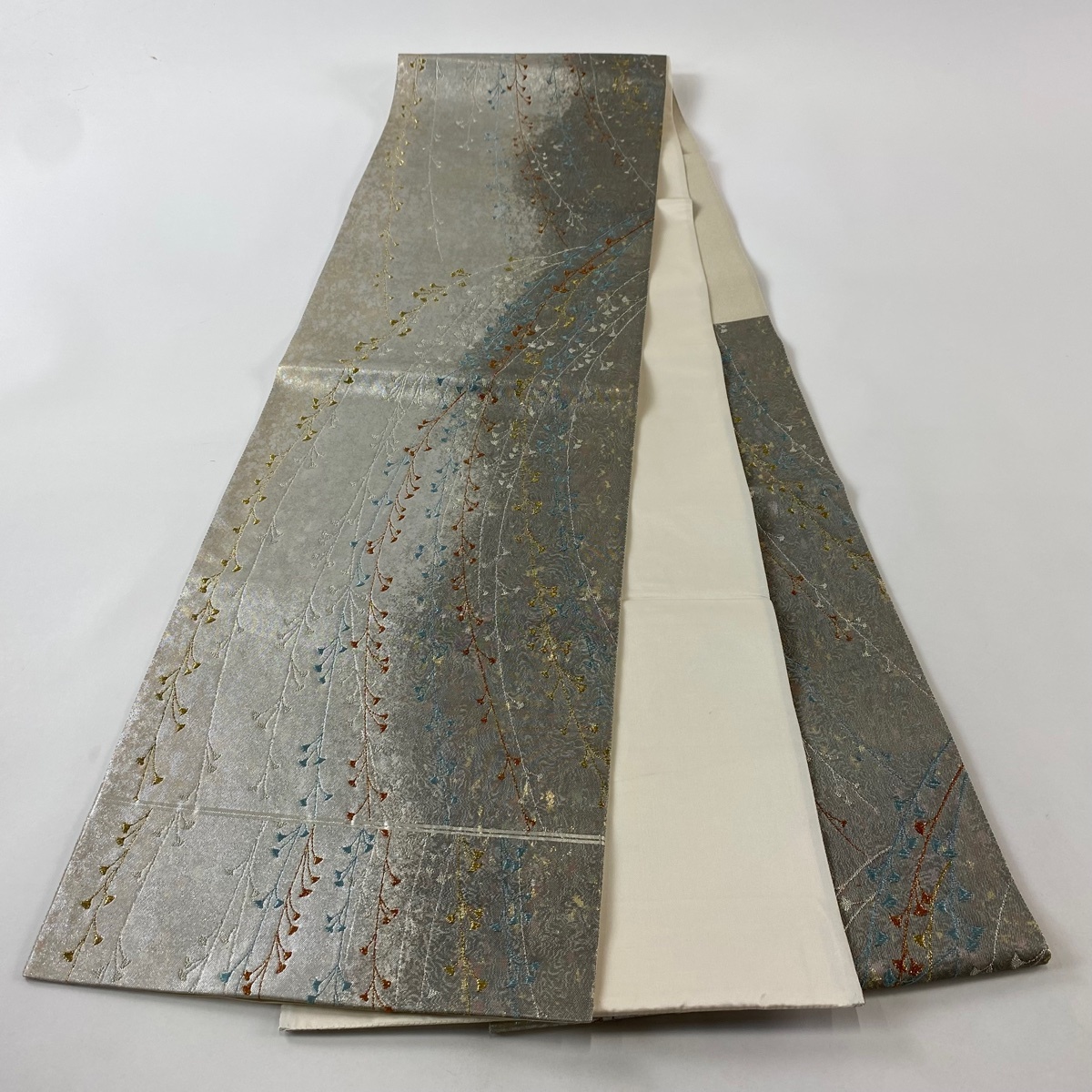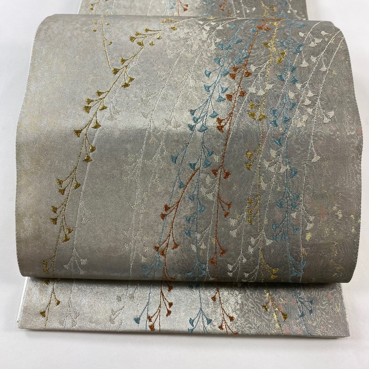 | 袋帯 美品 秀品 葉柄 幾何学 箔 灰茶 六通 正絹 【中古】 |