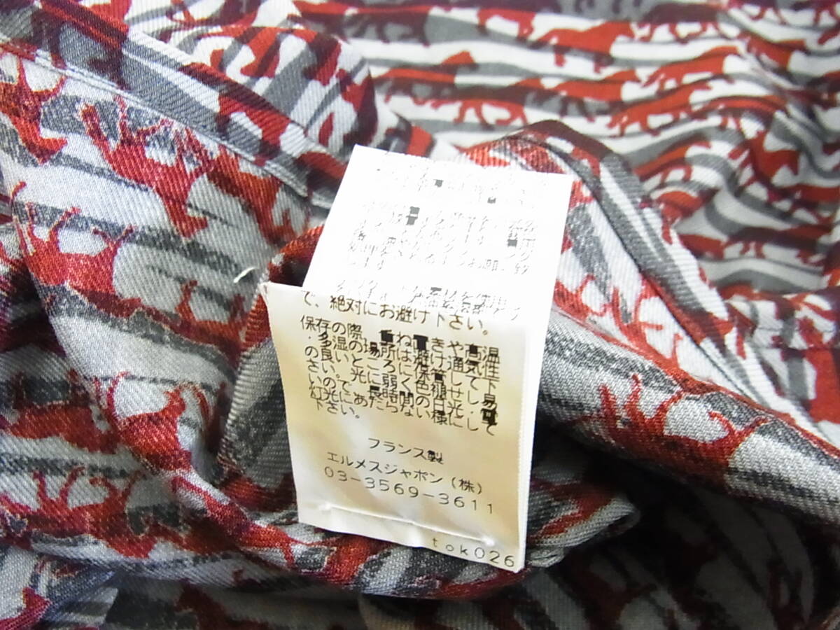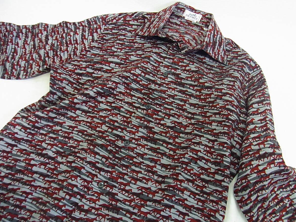 | エルメスのセリエボタン総馬柄シルク混長袖シャツ 使用品です。 サイズは41/16、着丈76cm・肩幅45cm・袖丈55cm・身幅57cmになります。 素材は毛65%・シルク35%、状態は特に難も無く着用に問題ございません。 この機会に是非どうぞ☆ 商品管理番号(160002) 10-28 | |