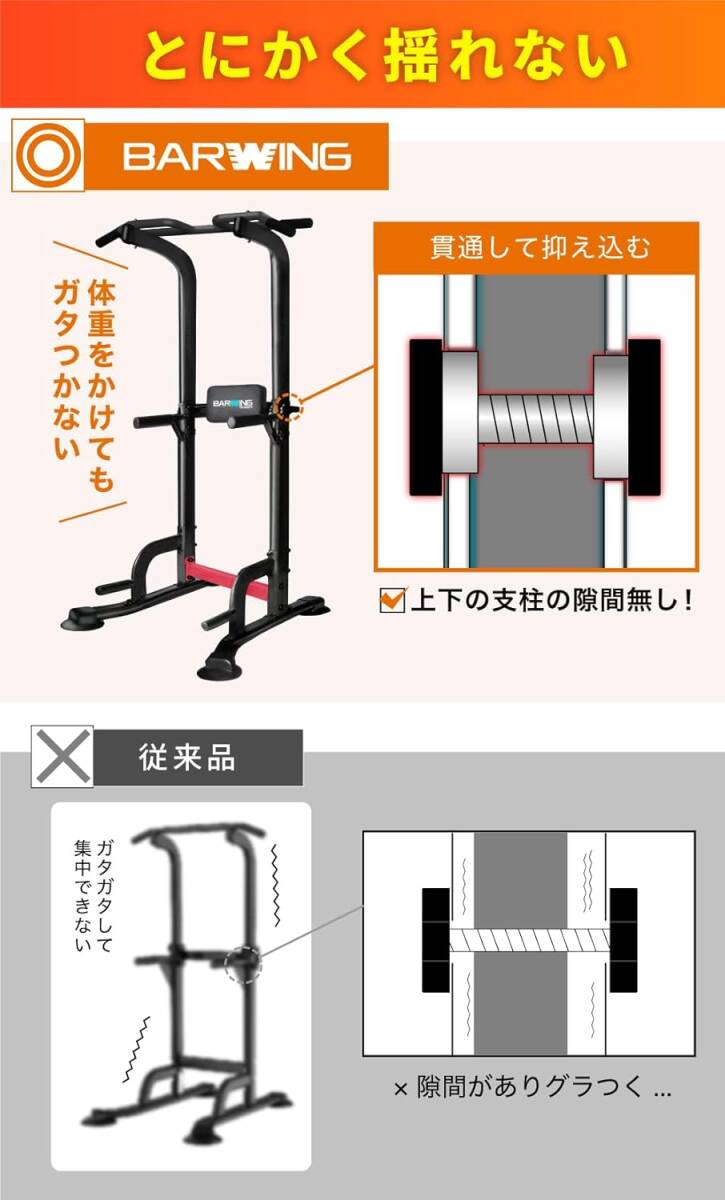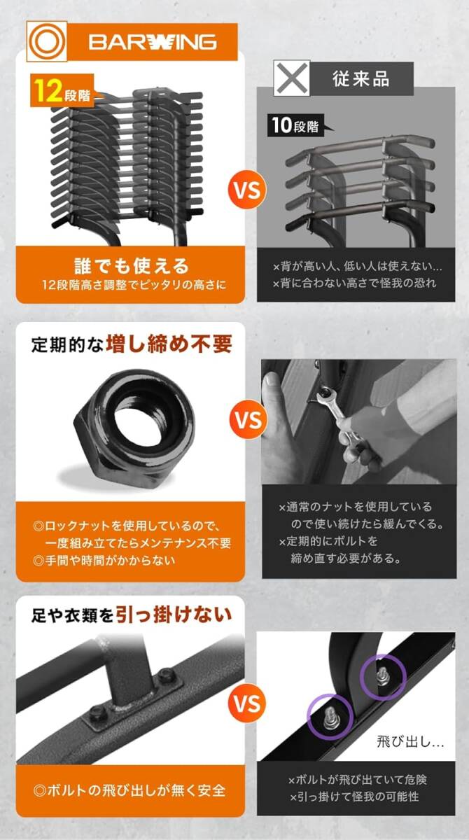赤ブラック色 バーウィング ぶら下がり健康器 【3way 多機能・改良バー】 高さ調整12段階 懸垂バー 筋トレ 懸垂 懸垂マシン