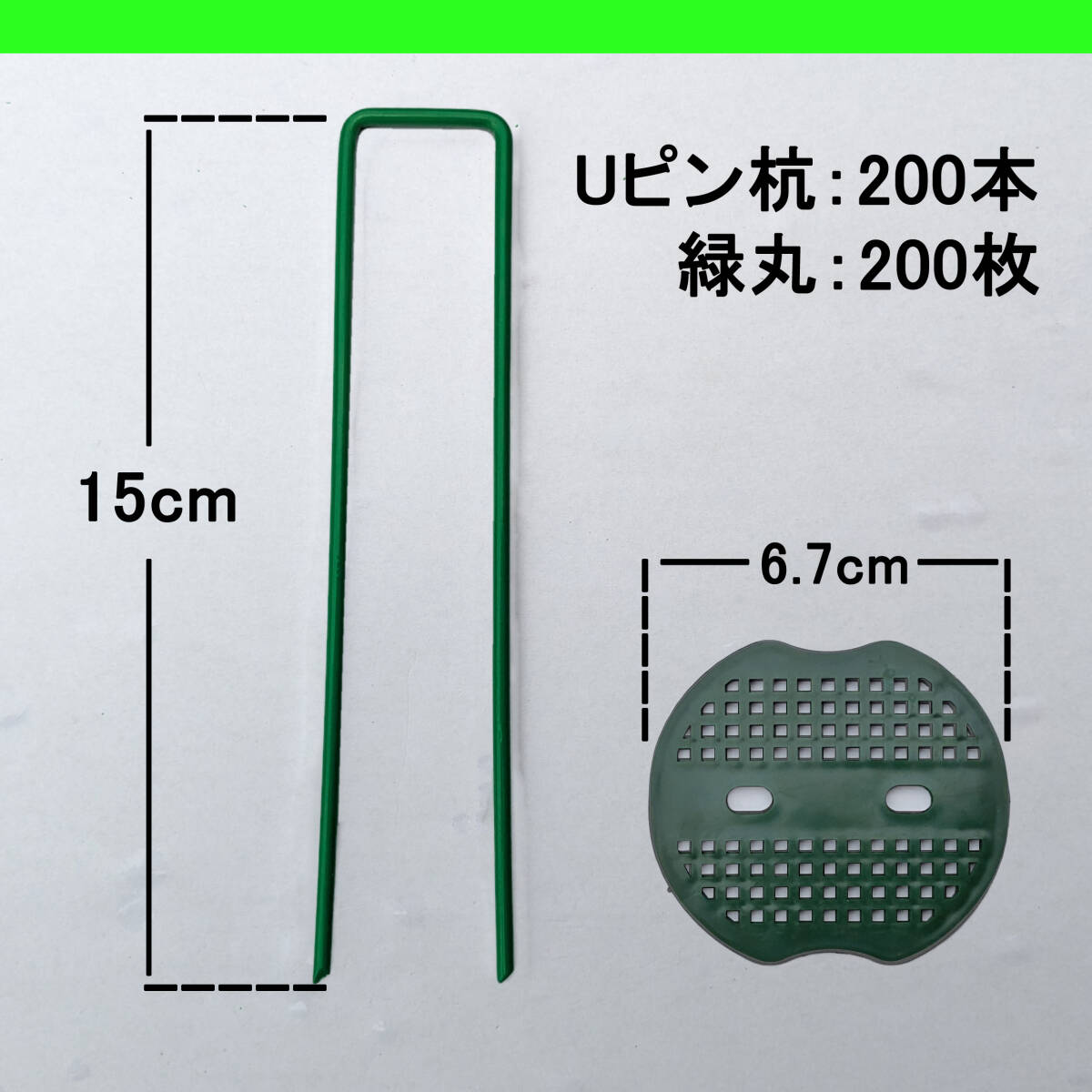 防草シート用 固定ピン Uピン杭200本セット 緑丸200枚付き