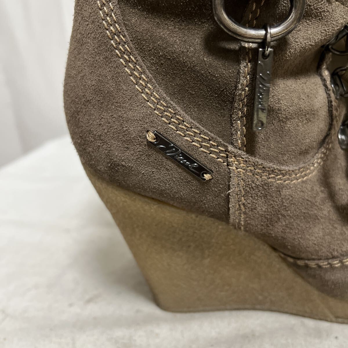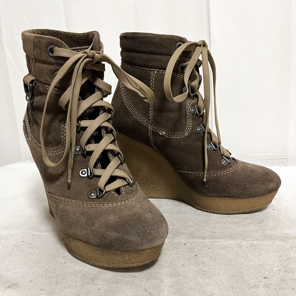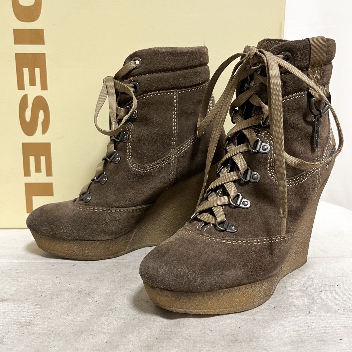 和869★ 箱付き DIESEL ディーゼル ショートブーツ ウェッジヒール スエードレザー 35 ブラウン レディース