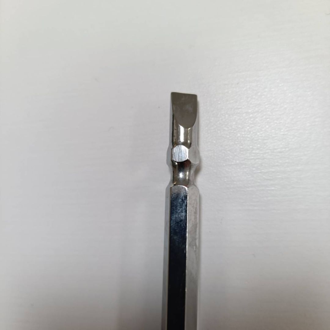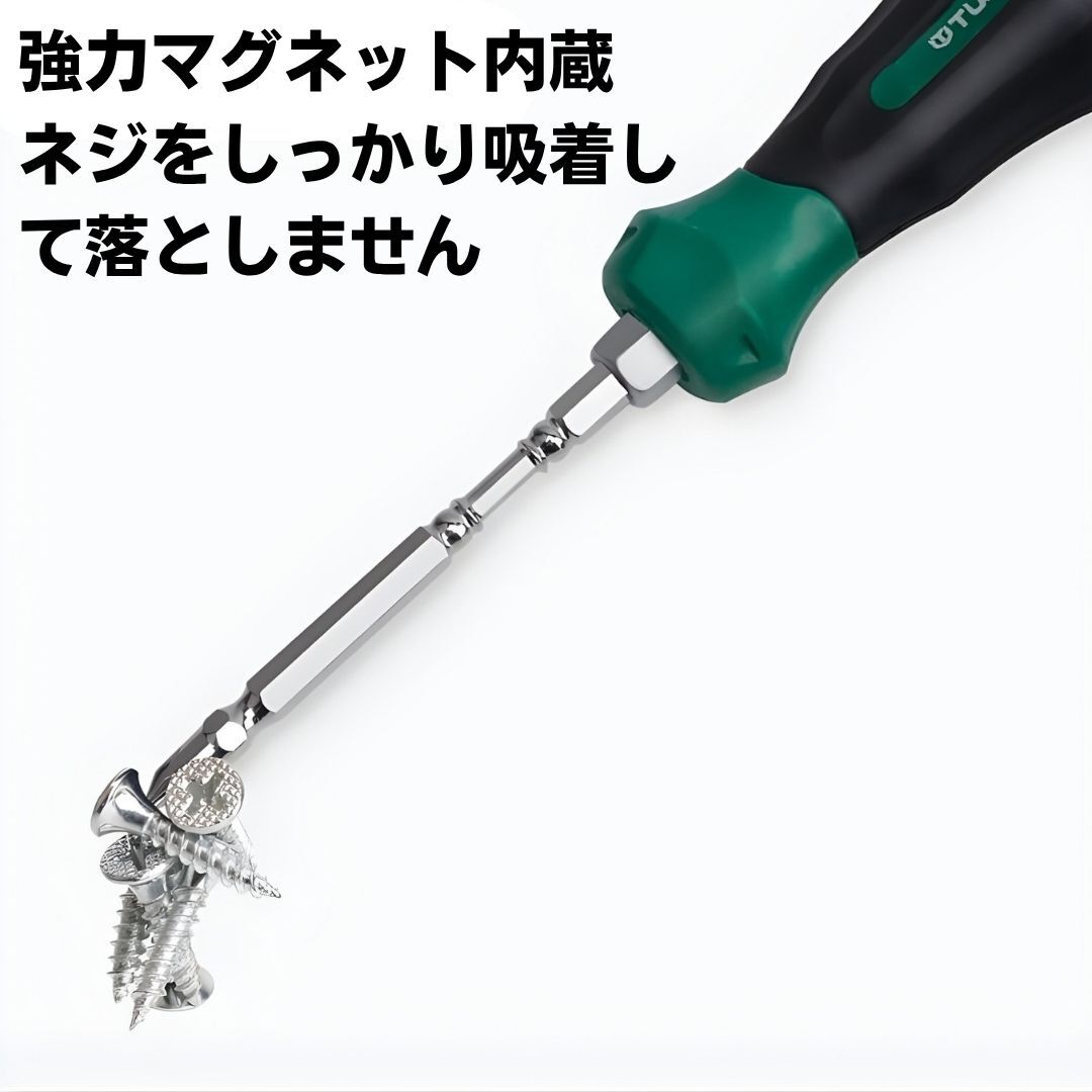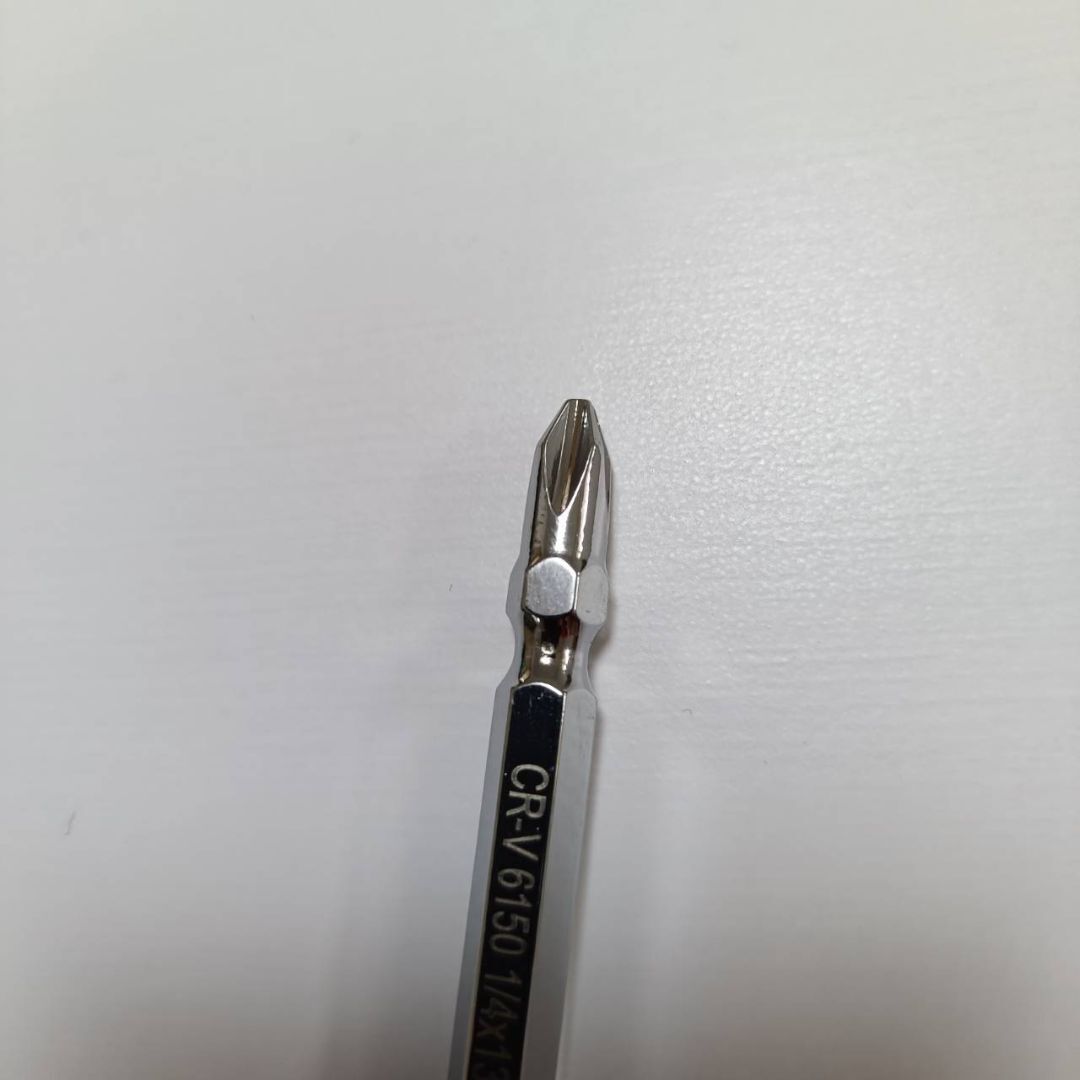 ビット部分は六角軸6.35mm(1/4インチ)規格で、電動ドライバーやインパクトドライバーにも装着可能。