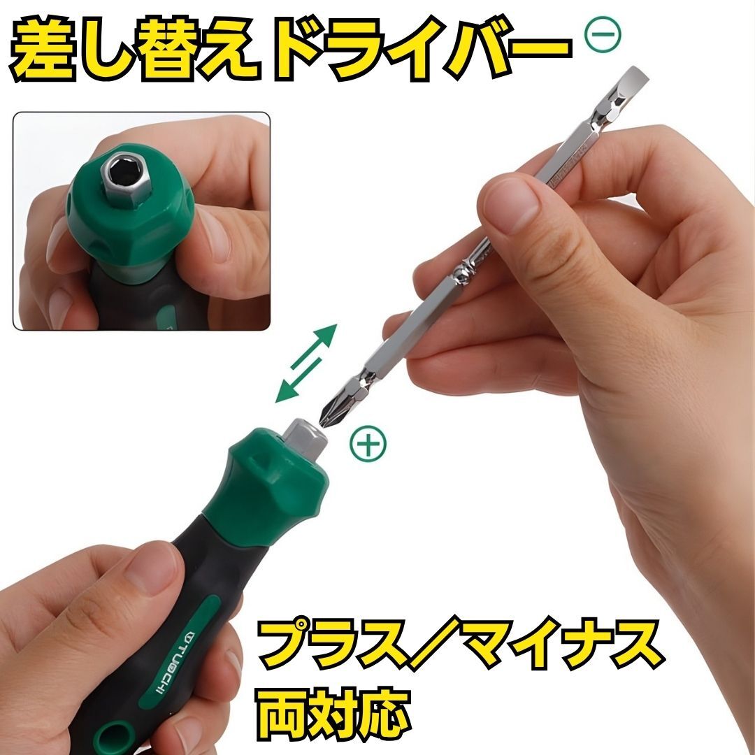 差し替え式ドライバー プラス/マイナス両対応 六角軸6.35mm 強力マグネット内蔵
