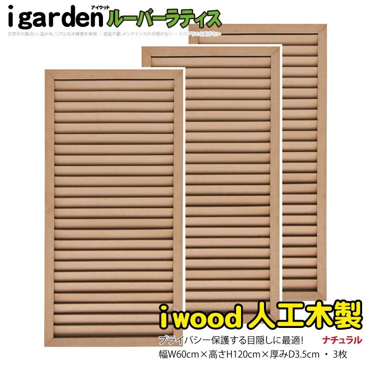 igarden 人工木 ルーバーラティス 3枚セット H1200×W600 ナチュラル 樹脂製 目隠し 日よけ 換気 仕切り 採光 境界 フェンス 10402