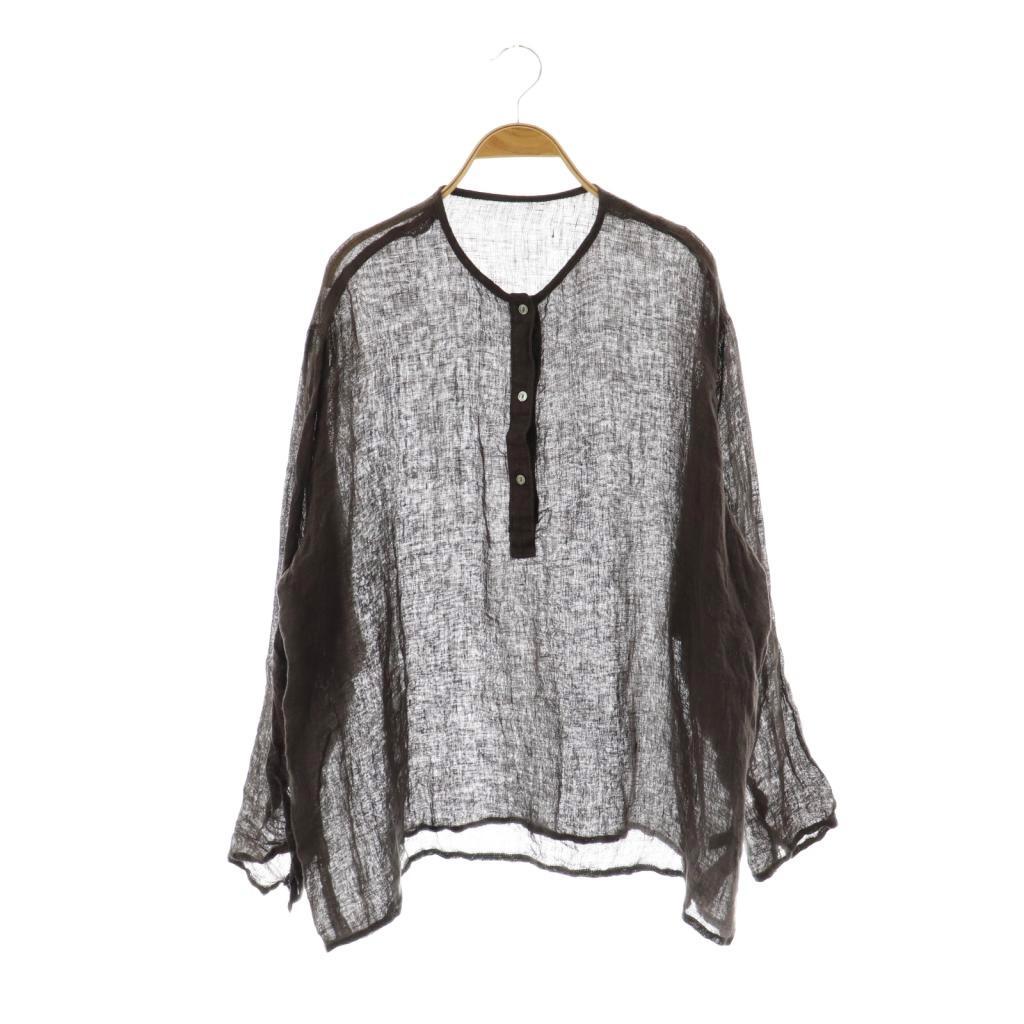 フレームワーク Framework 25SS LINEN クレープヘンリーネックブラウス シャツ リネン ダークブラウン /ES ■OS レディース