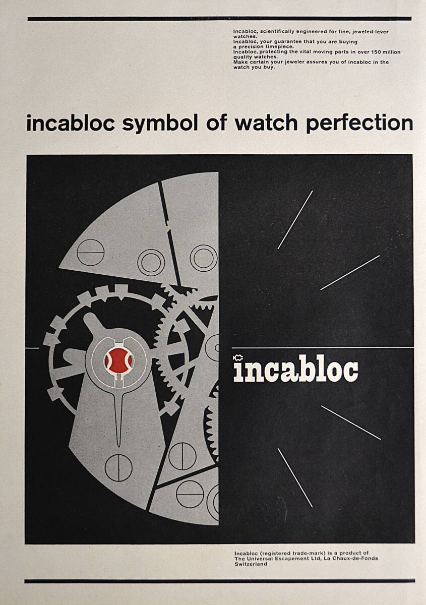 稀少・広告!1959年インカブロック 時計広告/Incabloc Watch/Swiss/W