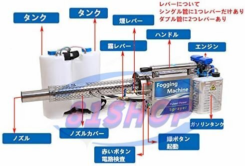 「81SHOP」 エンジン式 噴霧器 ミスト機 超微細散布 霧/くん煙兼用15L背負いタンク 2Lガソリンタンク 噴射距離50m 害虫駆除消毒除草肥料散