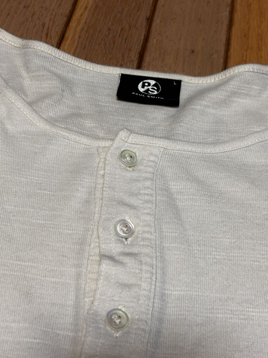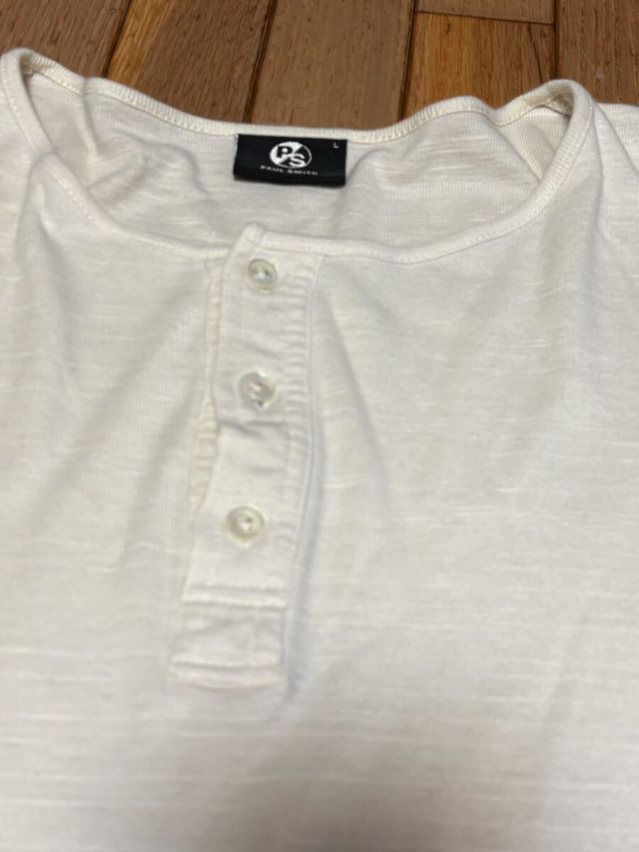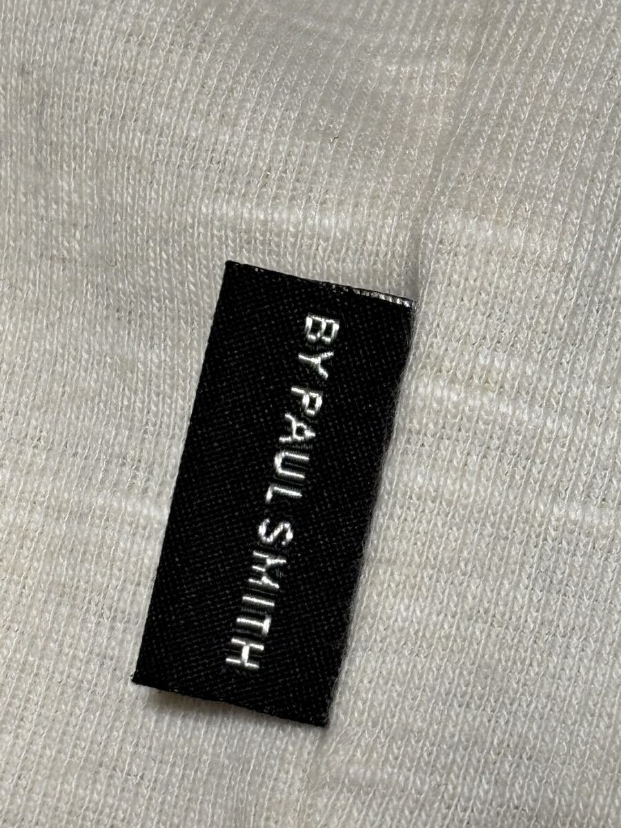 中古 おススメPAUL SMITH ヘンリーネック シャドーボーダー 半袖Tシャツ カットソー ポールスミス オフホワイト