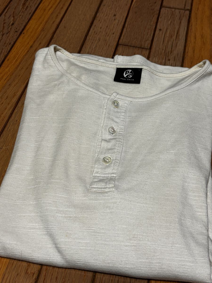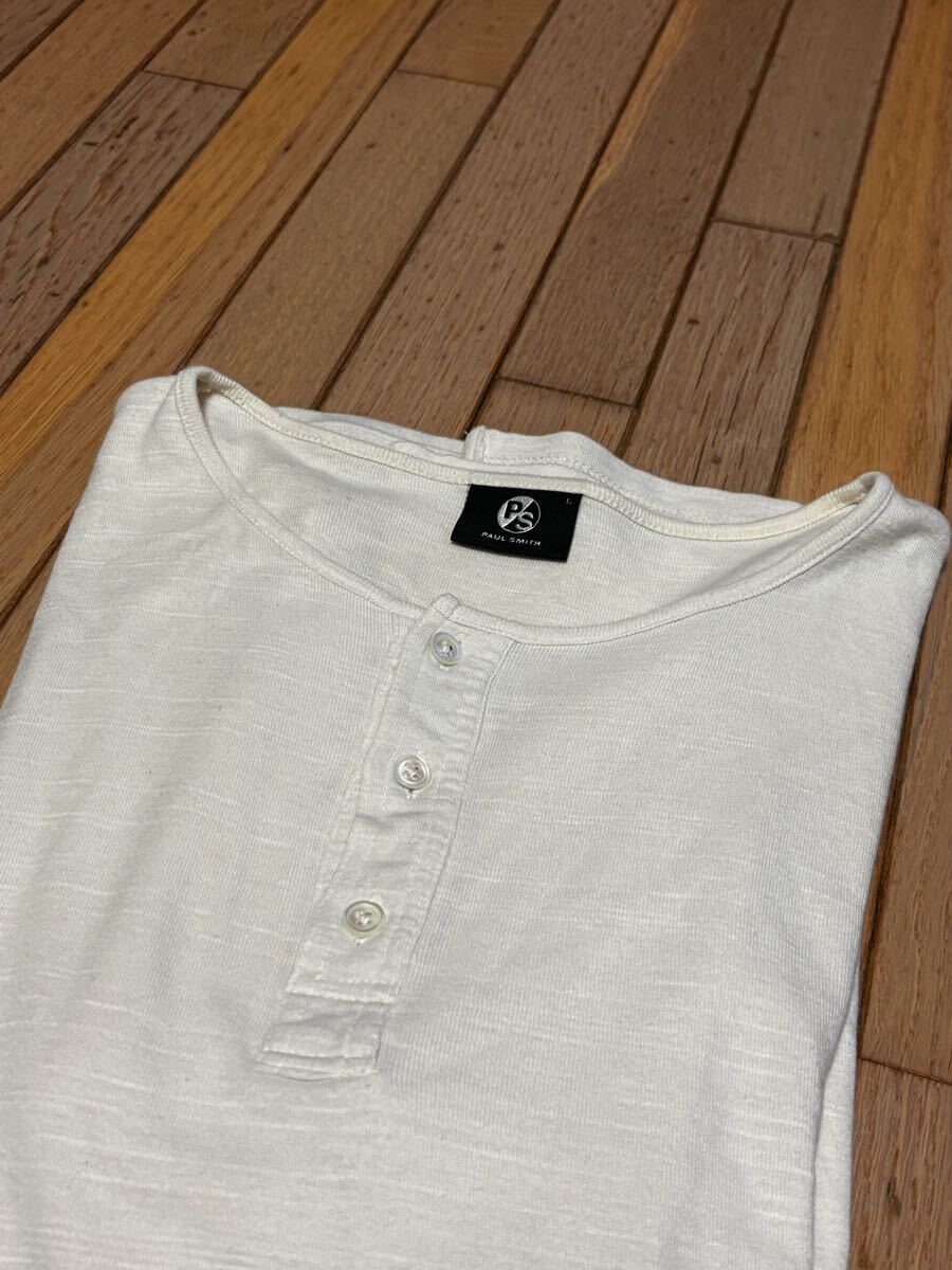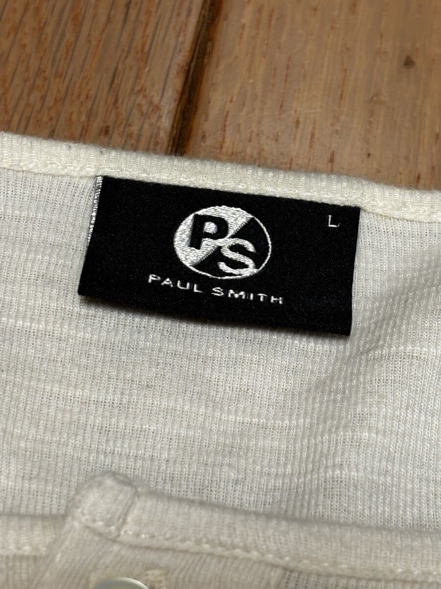 中古 おススメPAUL SMITH ヘンリーネック シャドーボーダー 半袖Tシャツ カットソー ポールスミス オフホワイト