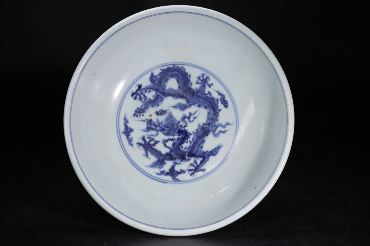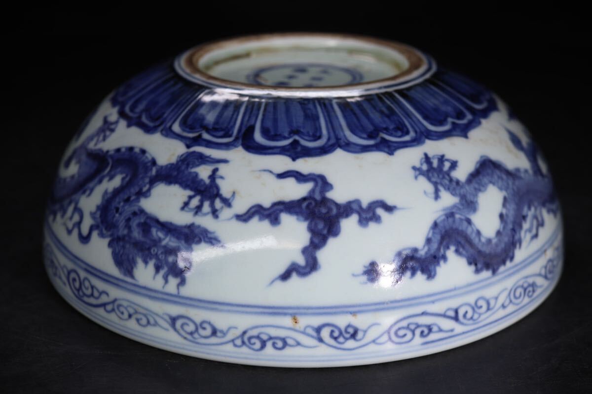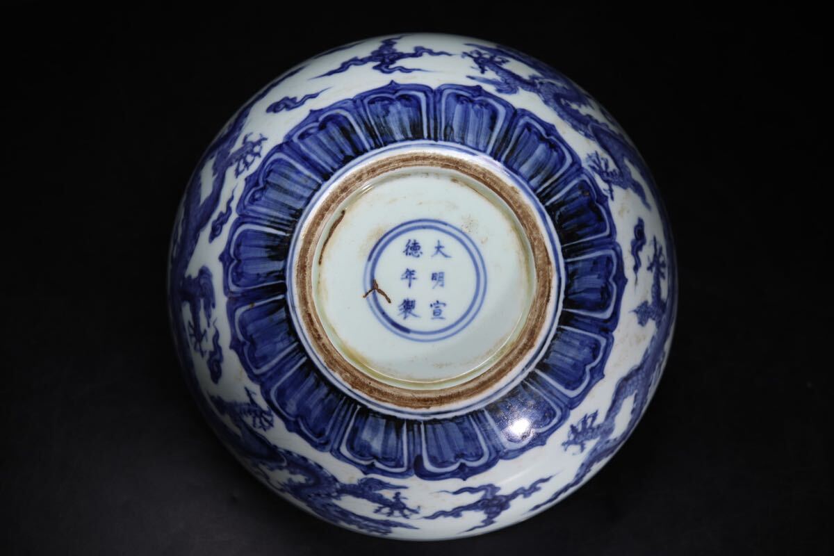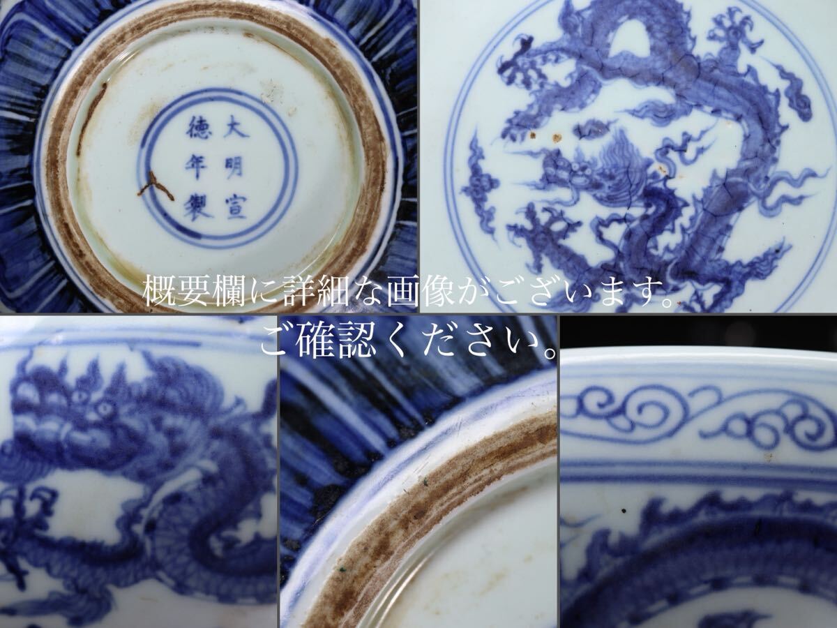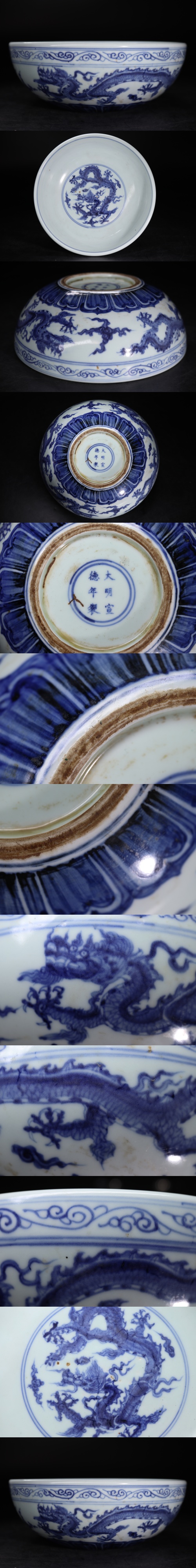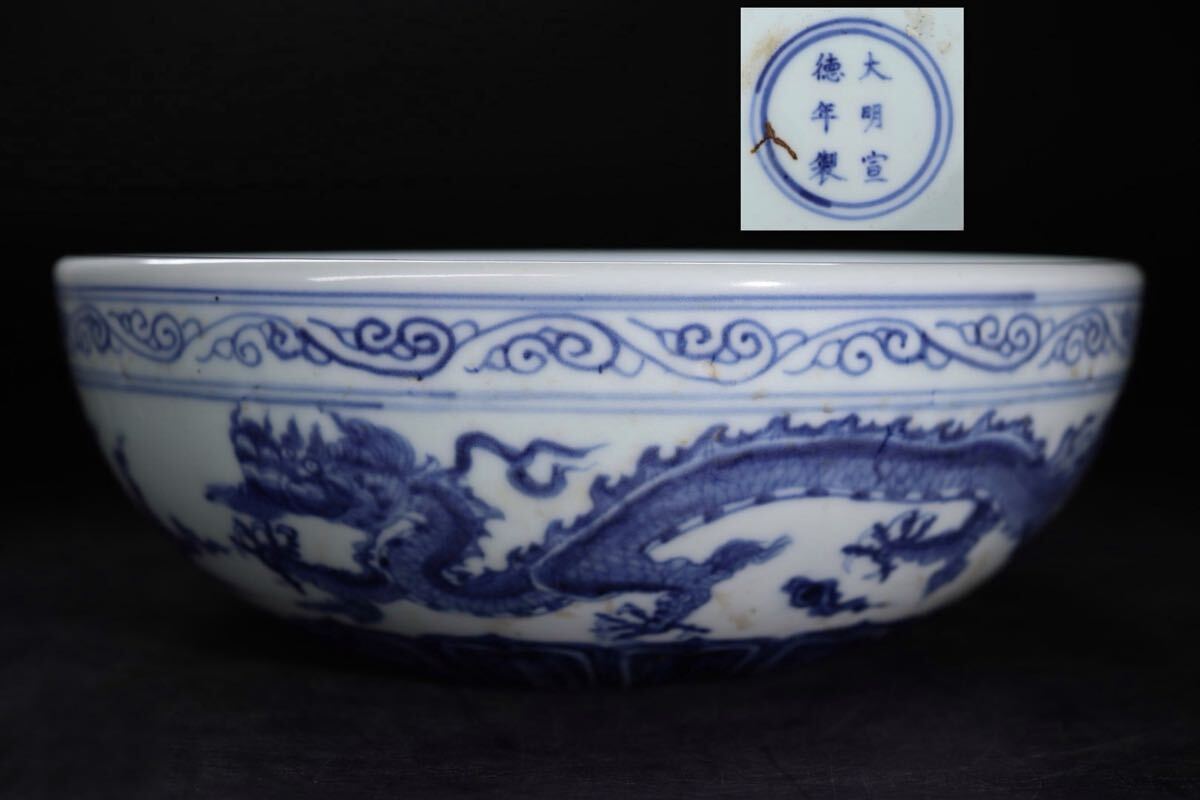 大明宣徳年製 底款 染付 双龍紋 鉢 / 明 宣徳 中国美術 茶器 煎茶道具 煎茶飾 .G2832 |