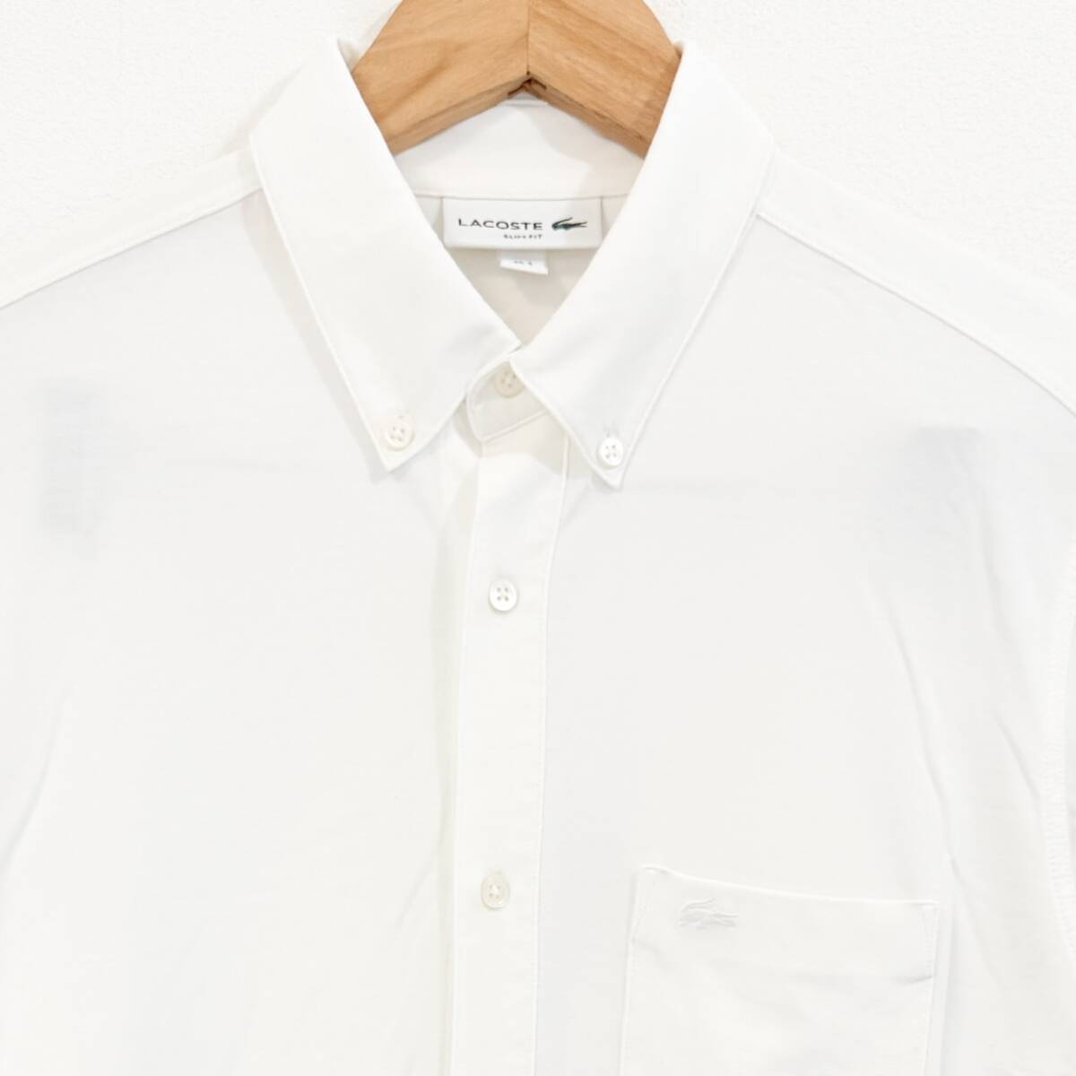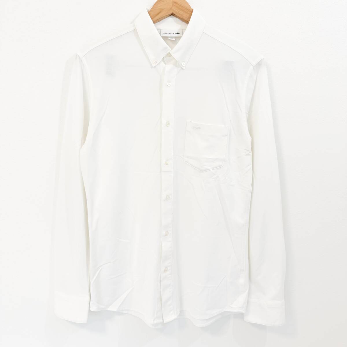 f3866ii LACOSTE(ラコステ) USAサイズS(M位) Yシャツ 長袖 ボタン留め スリムフィット ホワイト メンズ ストレッチ
