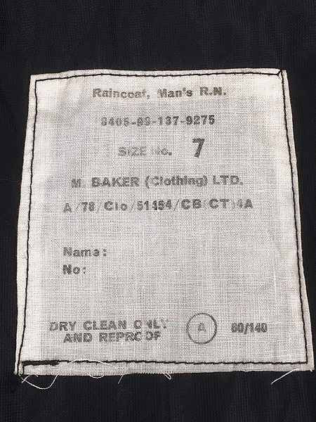イギリス軍各部隊に支給されていた名作レインコートの中でも、RM(Rotyal Marine)やRAF(Royal Air Force)に比べ圧倒的に見つからないR.N(ロイヤル ネイビー)。