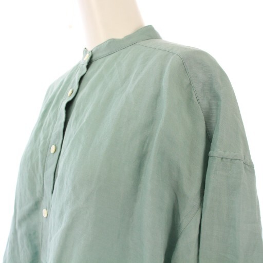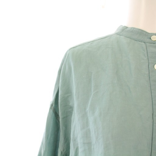 イエナ IENA 23SS ラミーリヨセルバックギャザーシャツ ブラウス 長袖 バンドカラー ワンカラー 36 青 ブルー 23050900062010