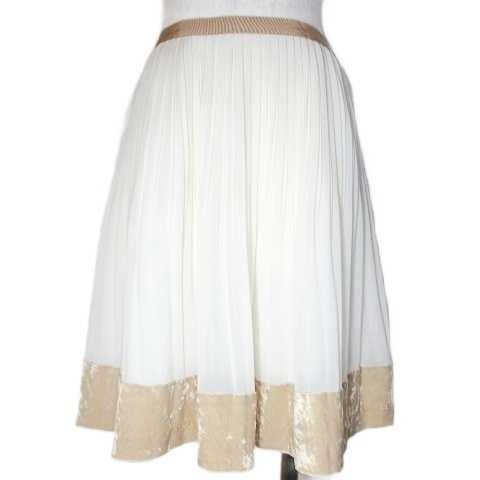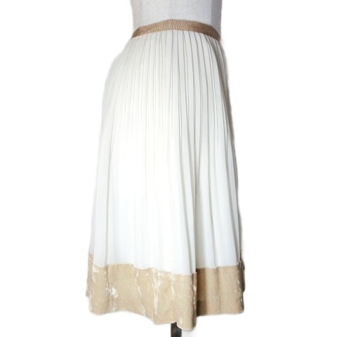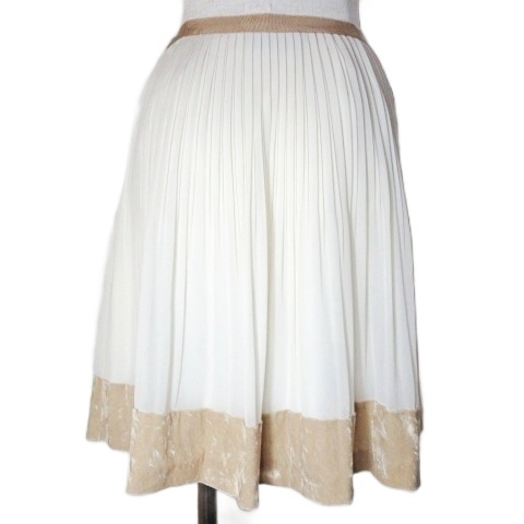 アンタイトル UNTITLED 小さいサイズ スカート プリーツ ひざ丈 ベロア切替 0 XS相当 アイボリー ベージュ ■YHS6 /X レディース