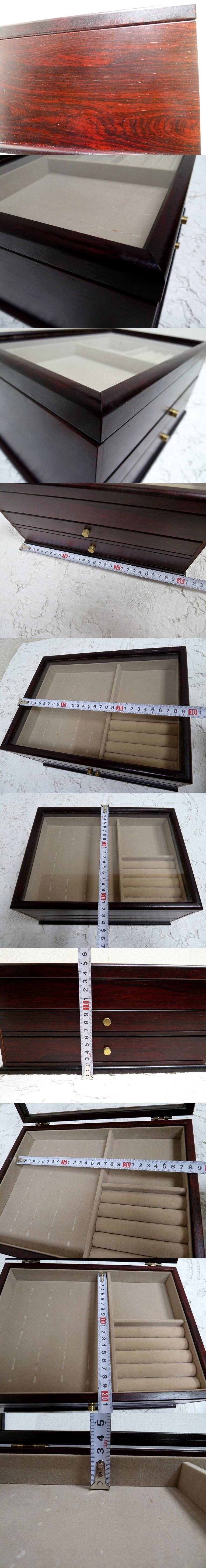 (☆BM)クラッシック 木製/ガラス 三段 ジュエリーケース 横幅31㎝ 2引き出し付き アクセサリーケース ボックス 宝石箱 複数用 収納 大容量