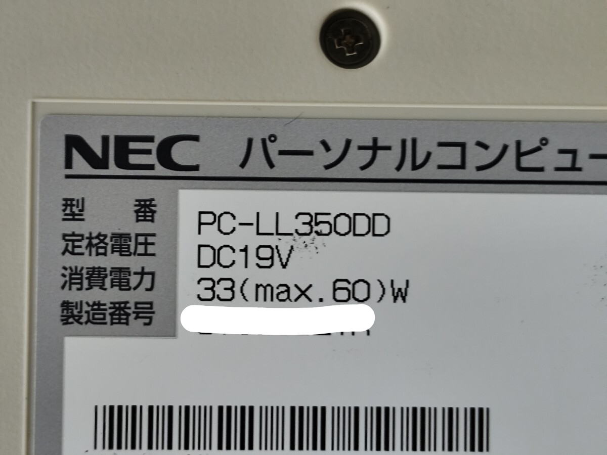 y1233 NEC LaVie LL350/D PC-LL350DD AMD Sempron? 768MB? 2005年頃 ジャンク
