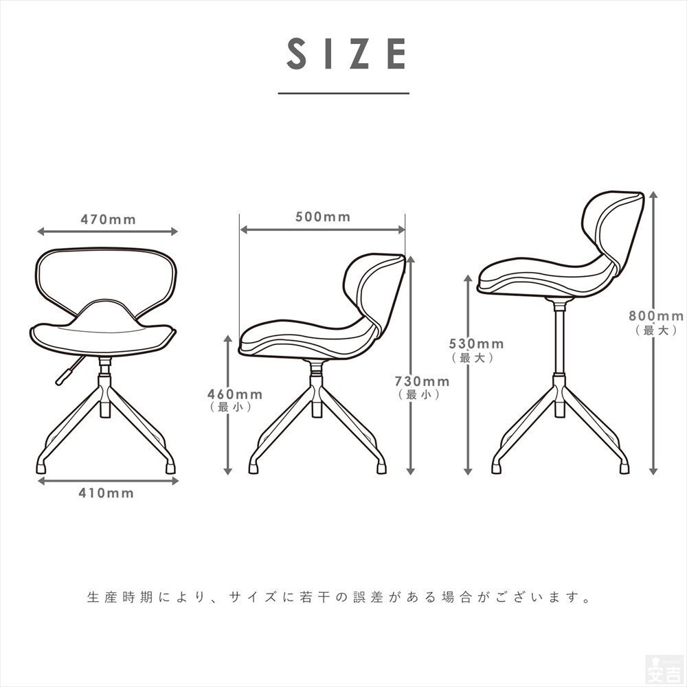 仕様 | 座面360度回転、ガス昇降式 |
