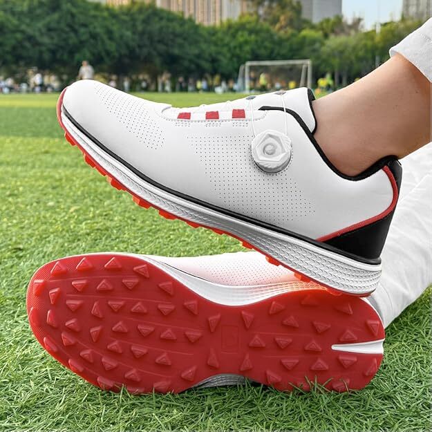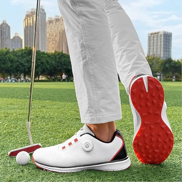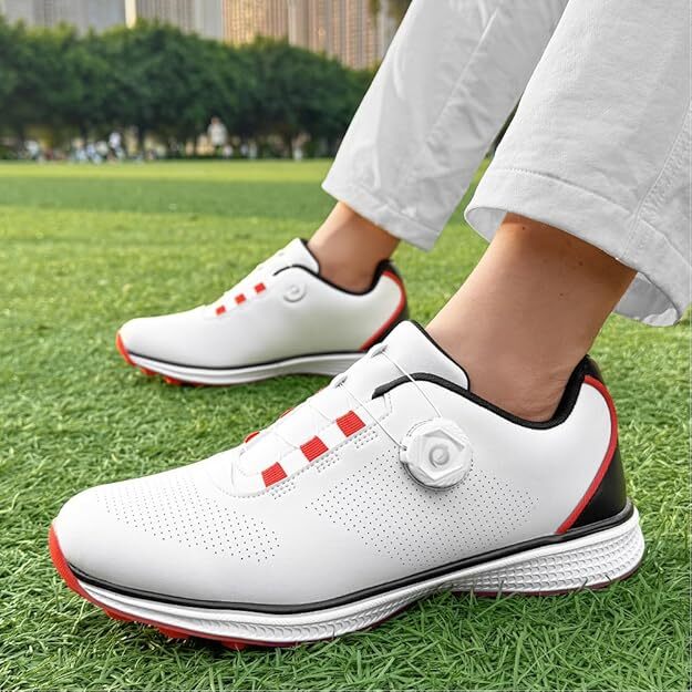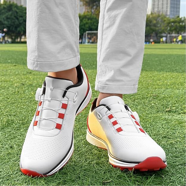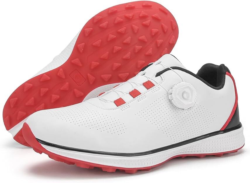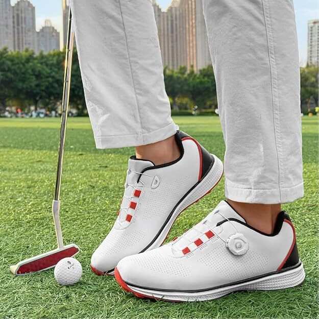 ゴルフシューズ ダイヤル式 メンズ 防水 スパイクレス ゴルフトレーニングシューズ 軽量 幅広 練習靴 通気性 厚底 ホワイト サイズ:26cm