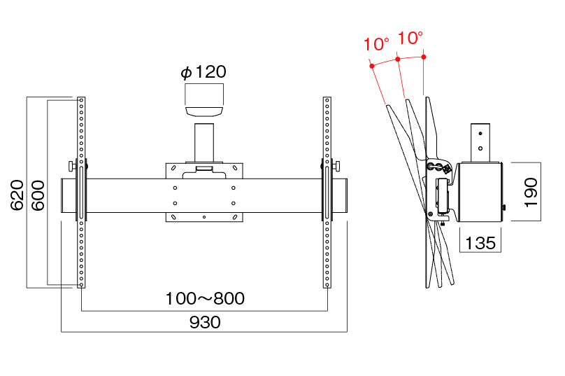 備考:角度調節:前方10 / 20度、左右各180度(任意調節可能)