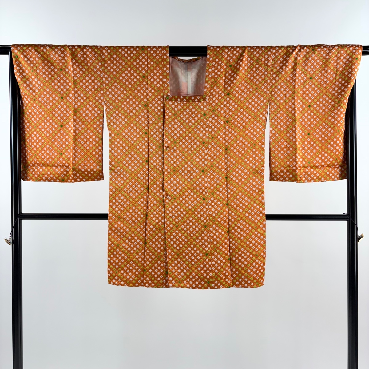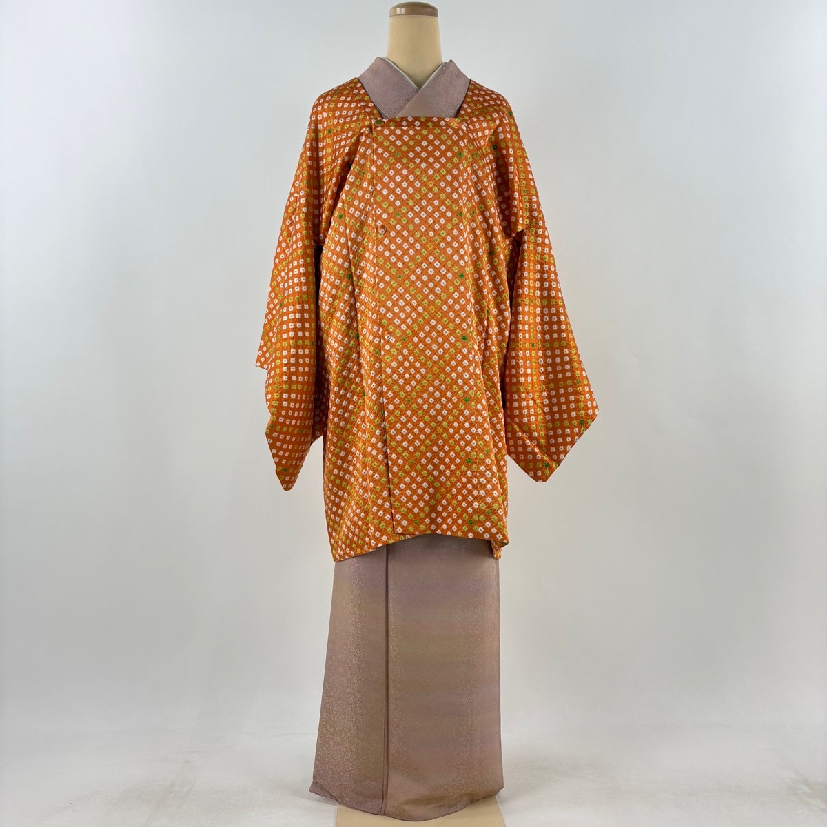 | 道行 美品 秀品 和装コート 角衿 絞り オレンジ 身丈94 裄丈69 L 正絹 【中古】 |