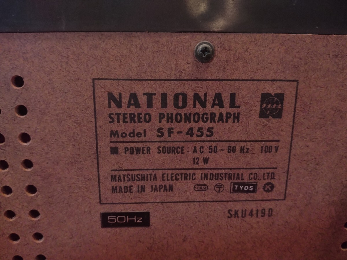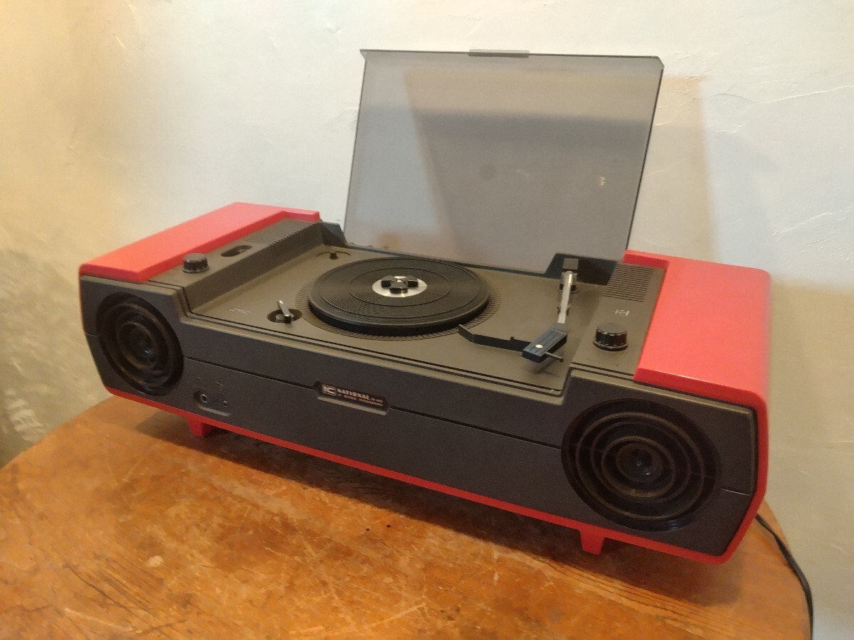 R70928-3 昭和系レトロ National レコードプレーヤー SF-455 動作確認済み