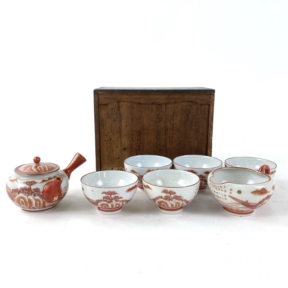 | 商品名 | 時代 明治九谷 赤絵茶器揃 細密絵 急須 湯冷 湯呑 セット 箱付 煎茶器 骨董 陶磁器 茶道具 4153396 |
