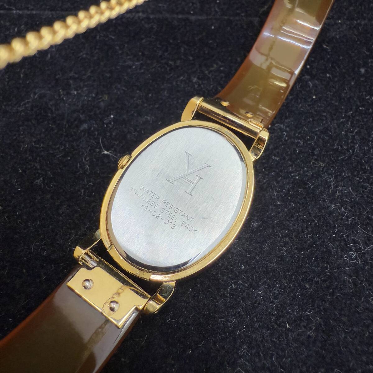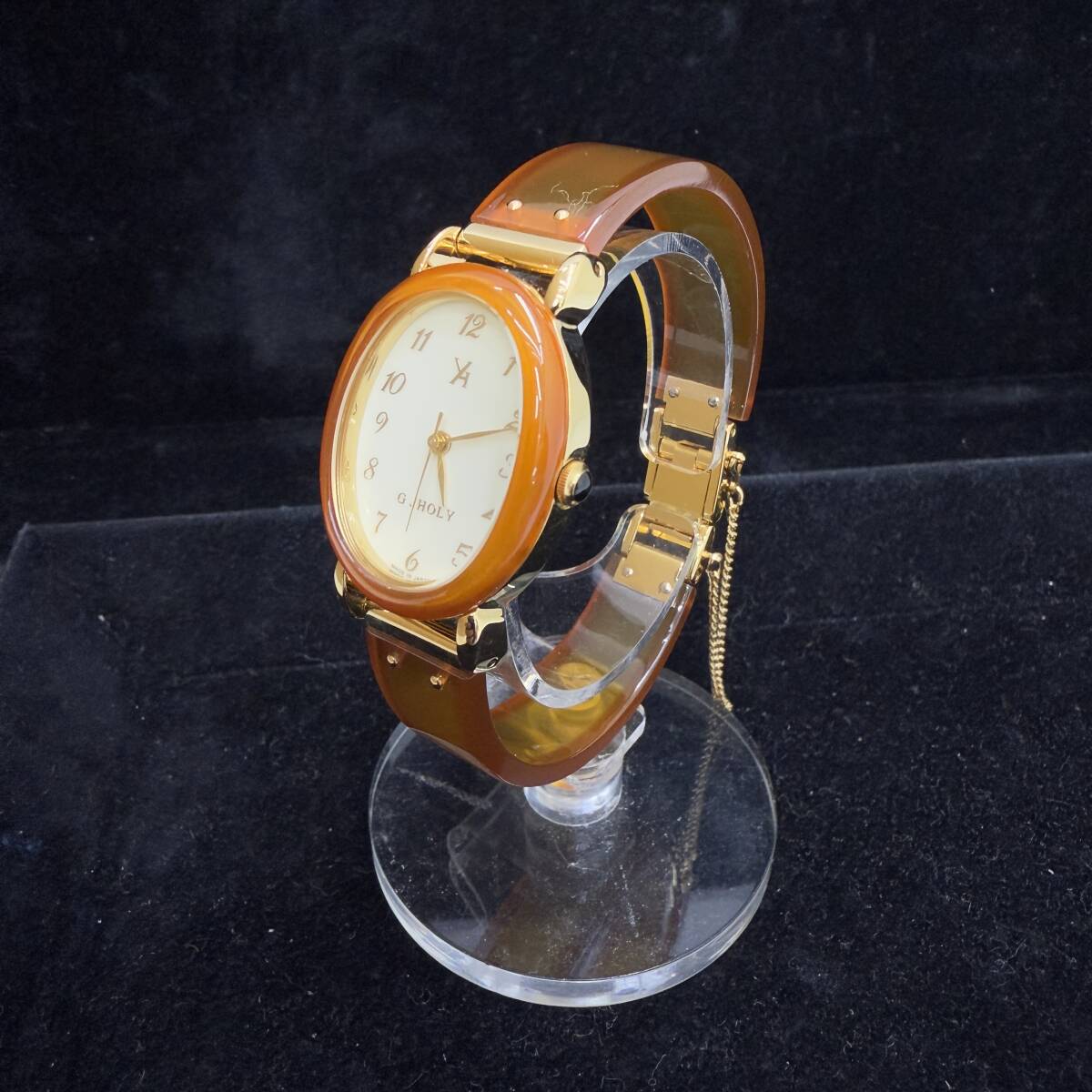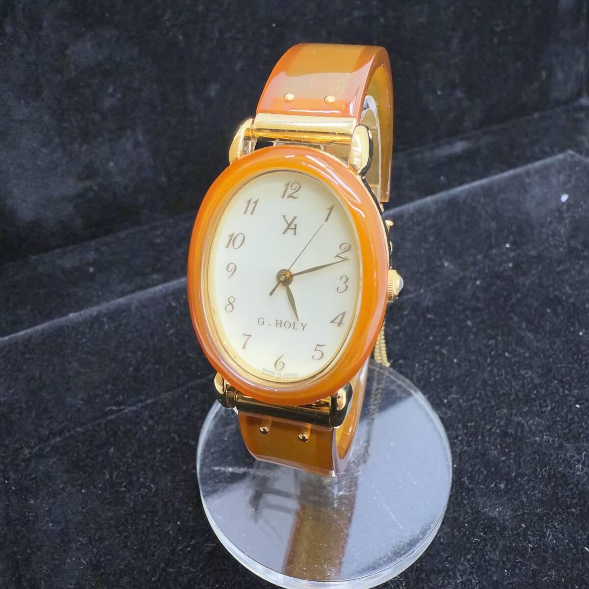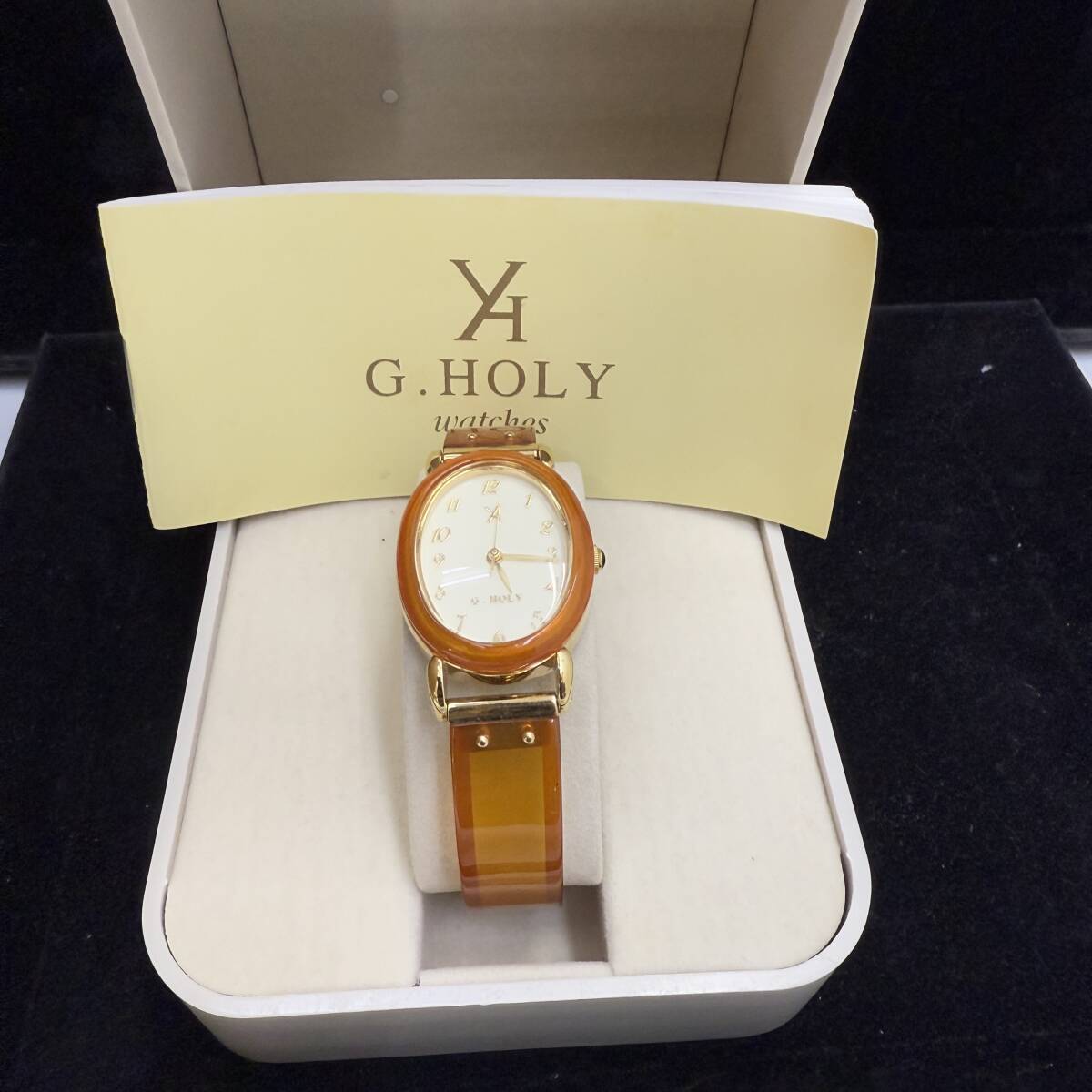 | ■□1034 電池交換済 G.HOLY YGH02-013 レディース腕時計 べっ甲風 オーバル型 アイボリー文字盤 | |||