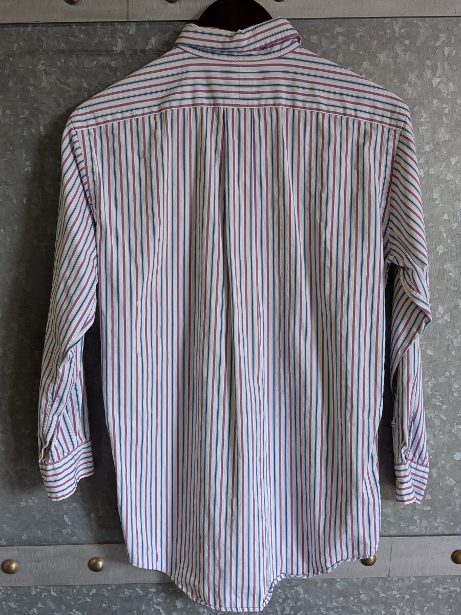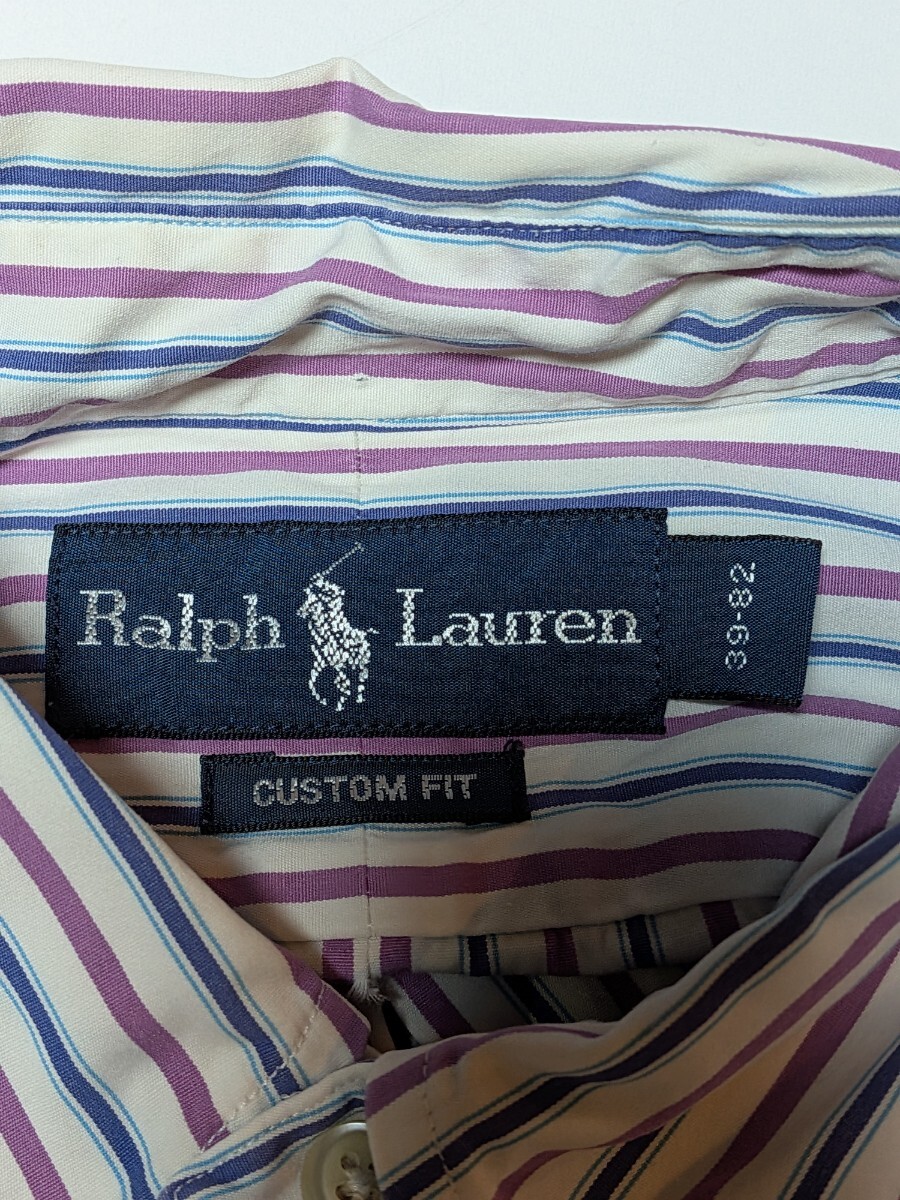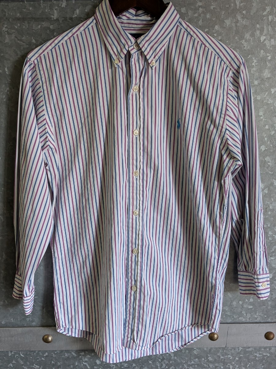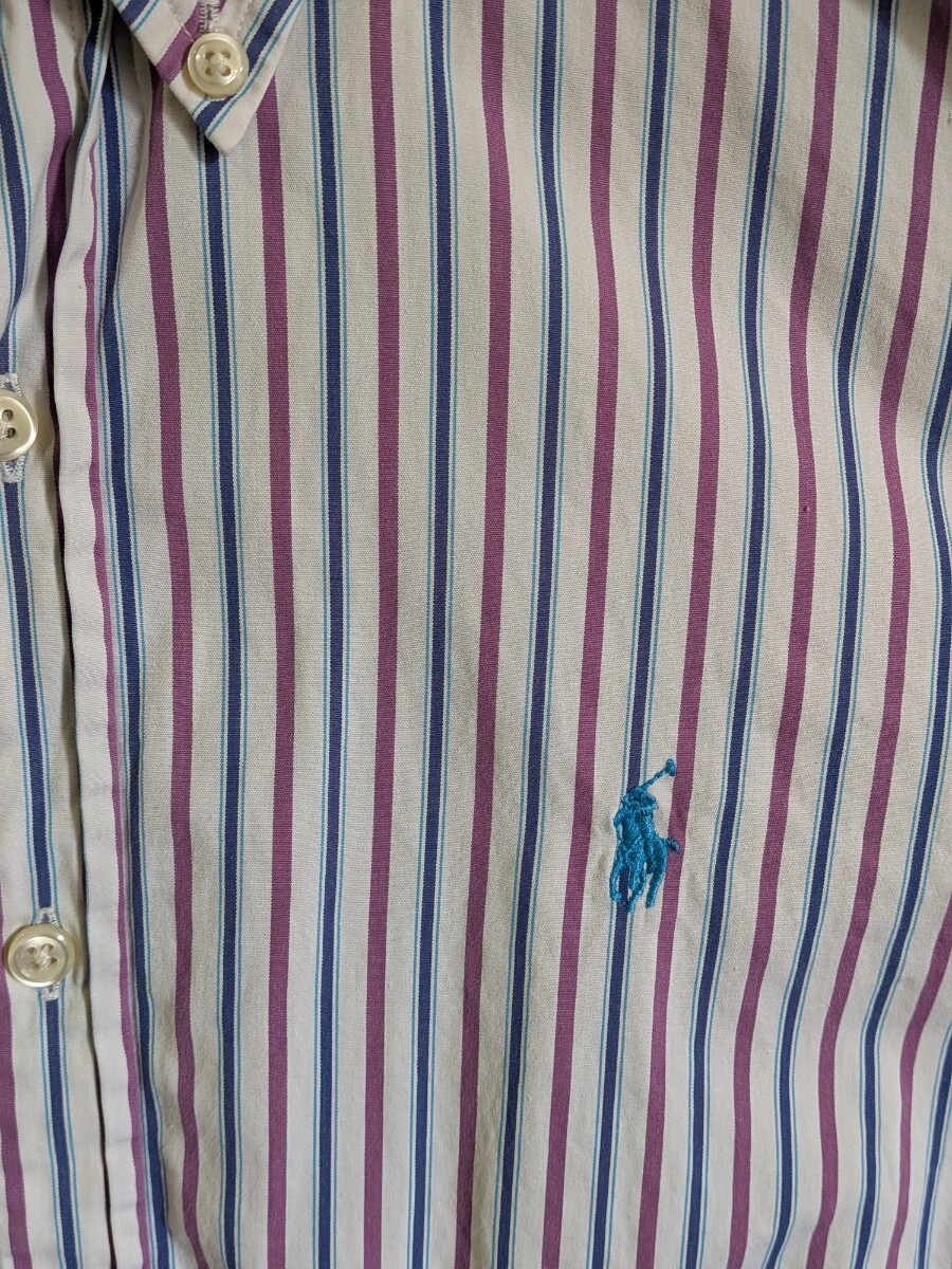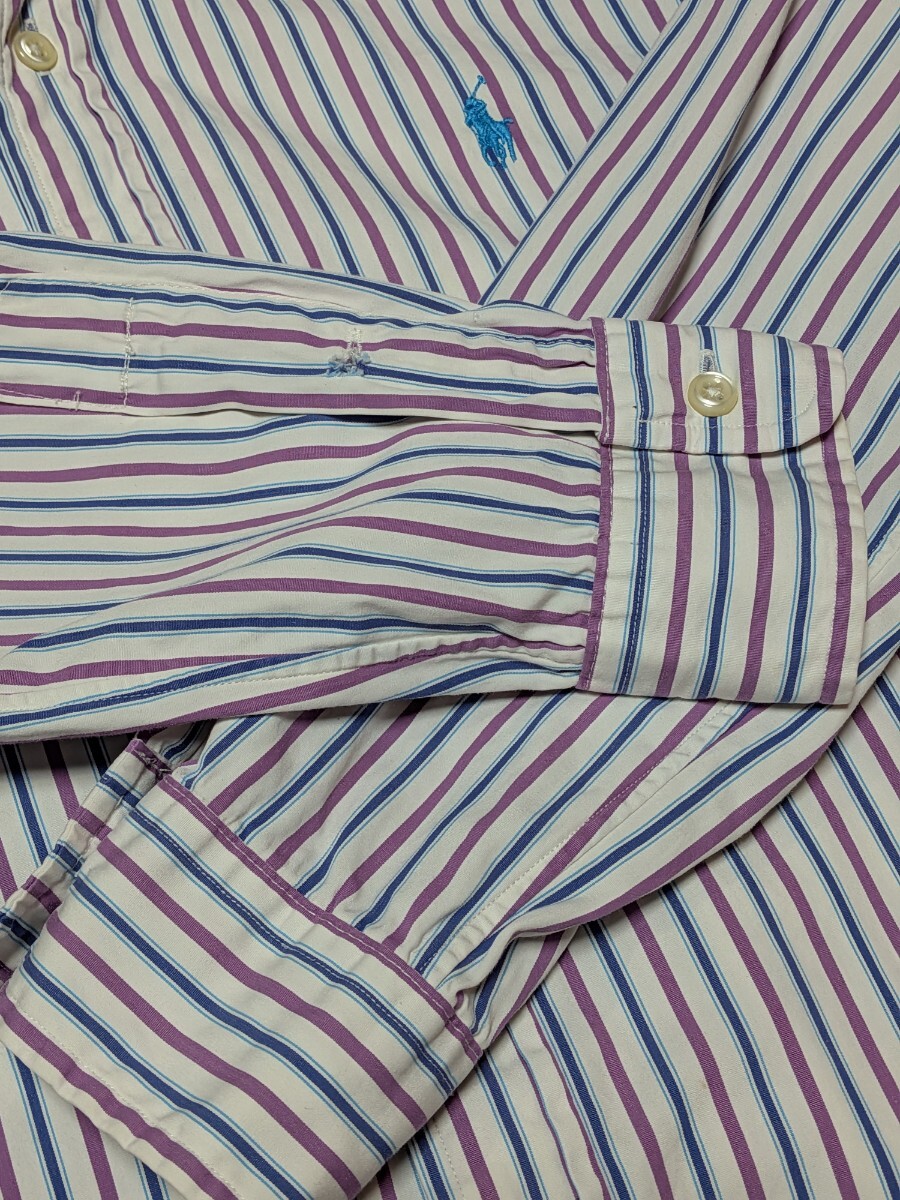 上品な配色のストライプ柄が印象的な、ラルフローレンの定番ボタンダウンシャツ。