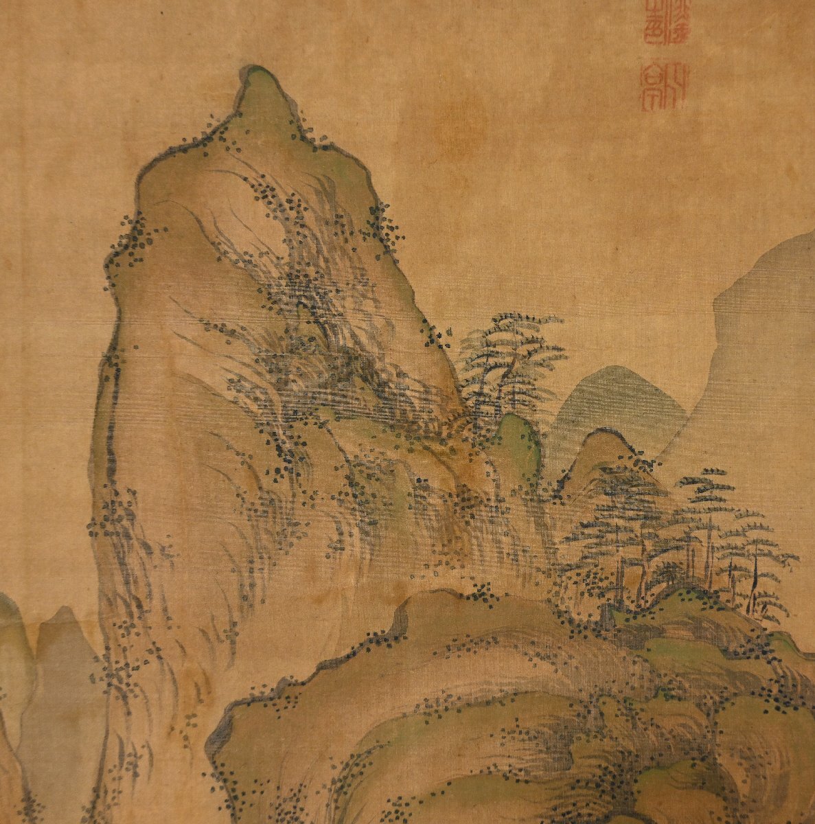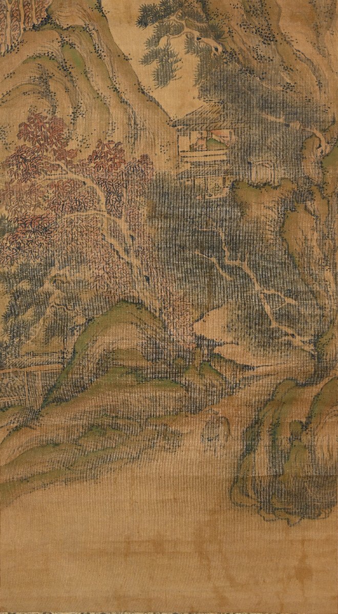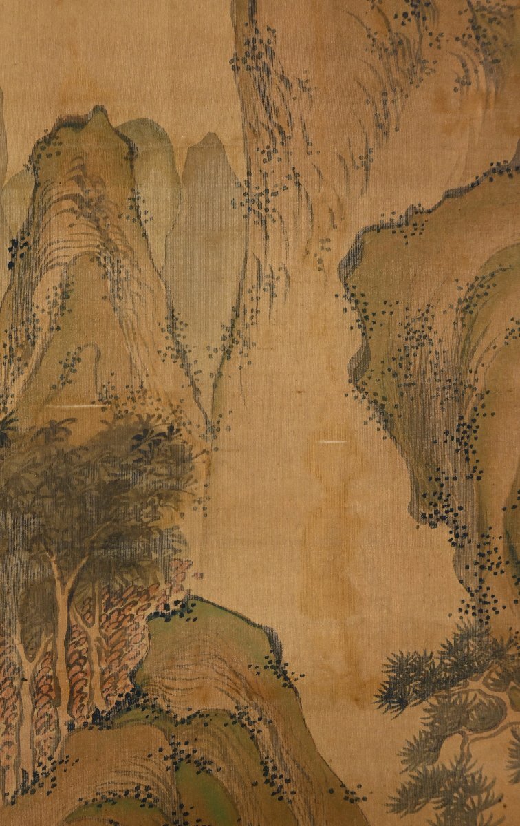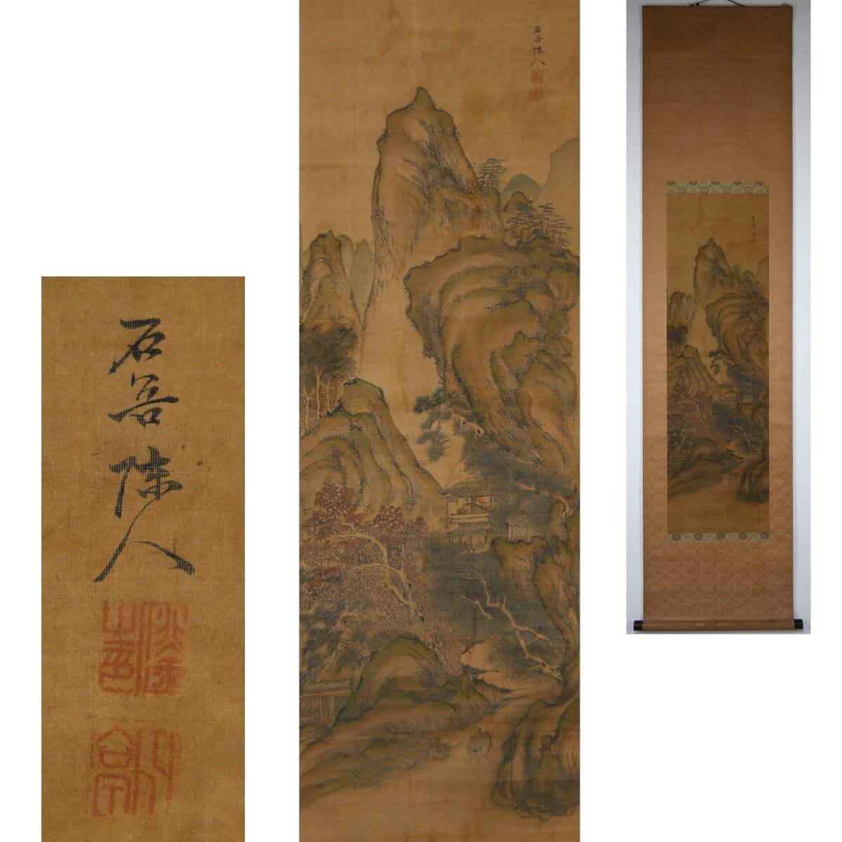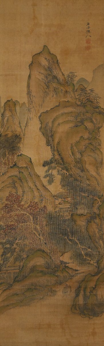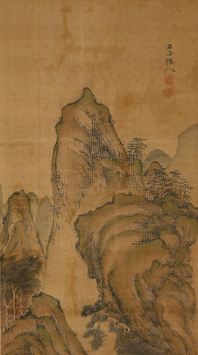 | 石吾陳人 楼閣山水図 肉筆絹本 中国画 中国美術 南画 風景画 掛軸【華芳】 |