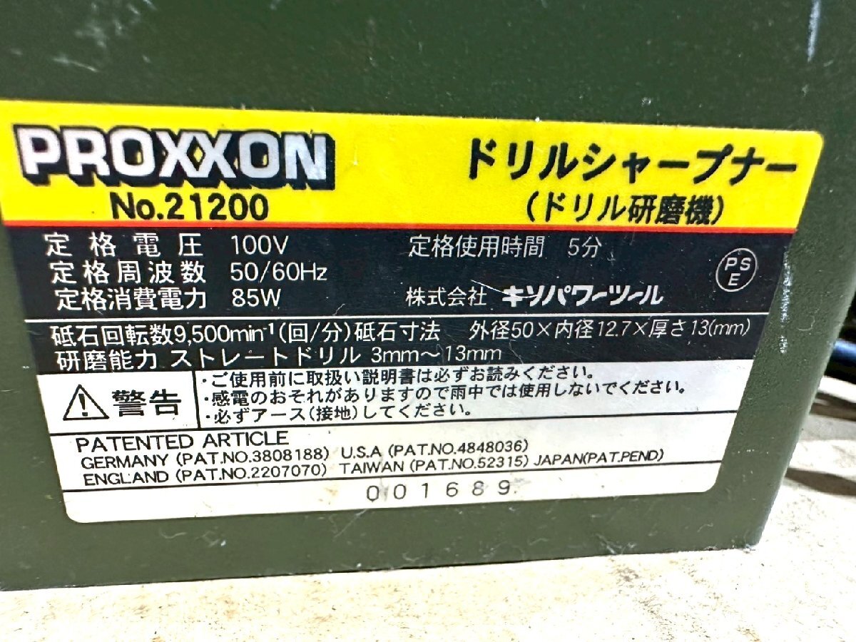 《4921》PROXXON プロクソン ドリル研磨機 ドリルシャープナー キソパワーツール | |||