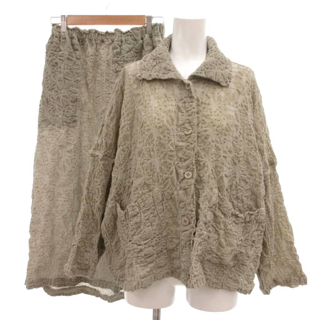 ミーイッセイミヤケ セットアップ シャツジャケット スカート フロッキープリント フレア ミモレ ロング グレー