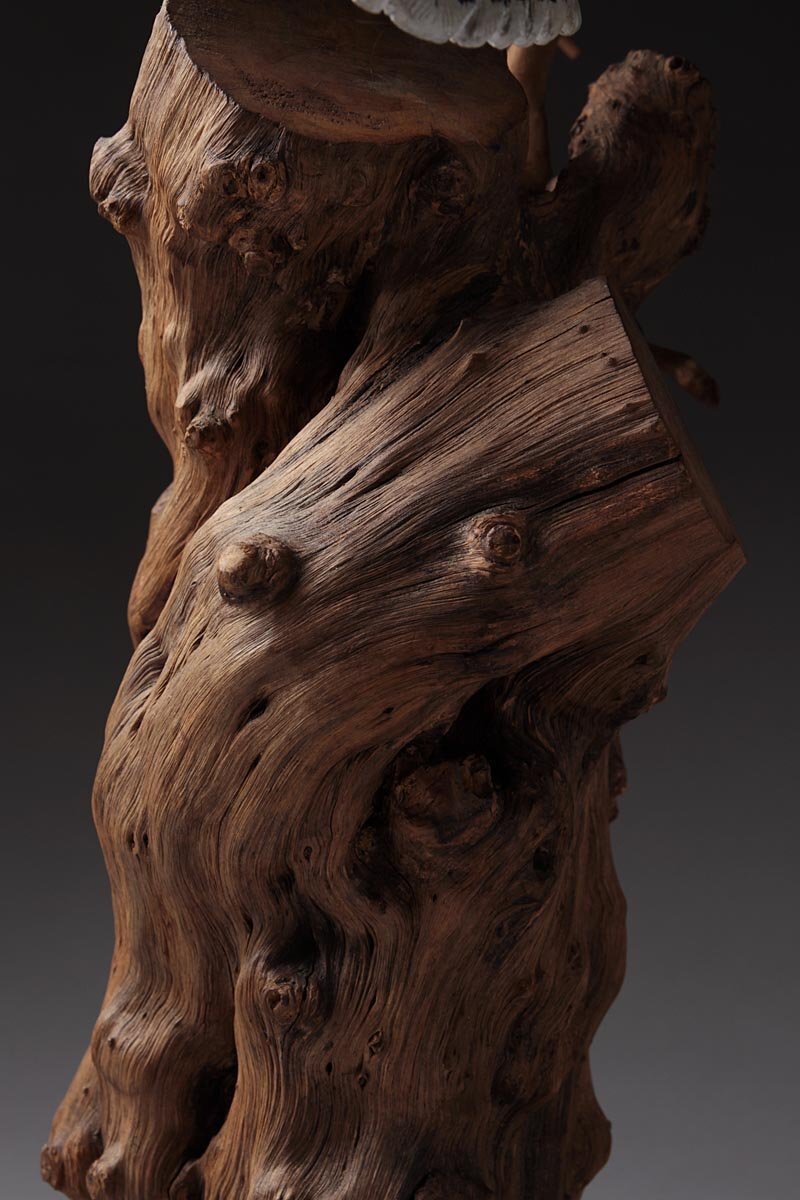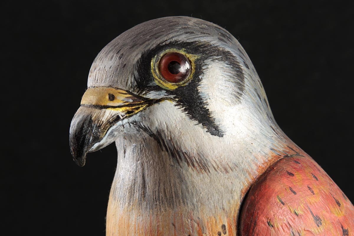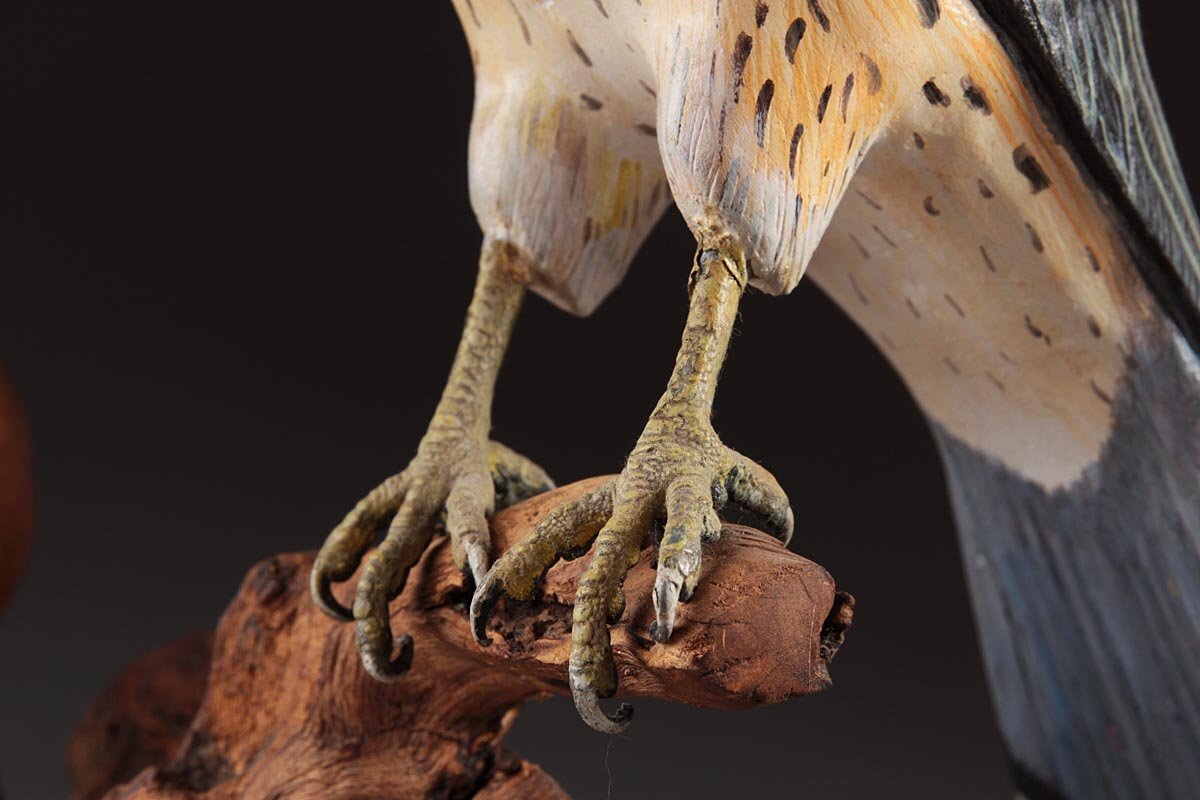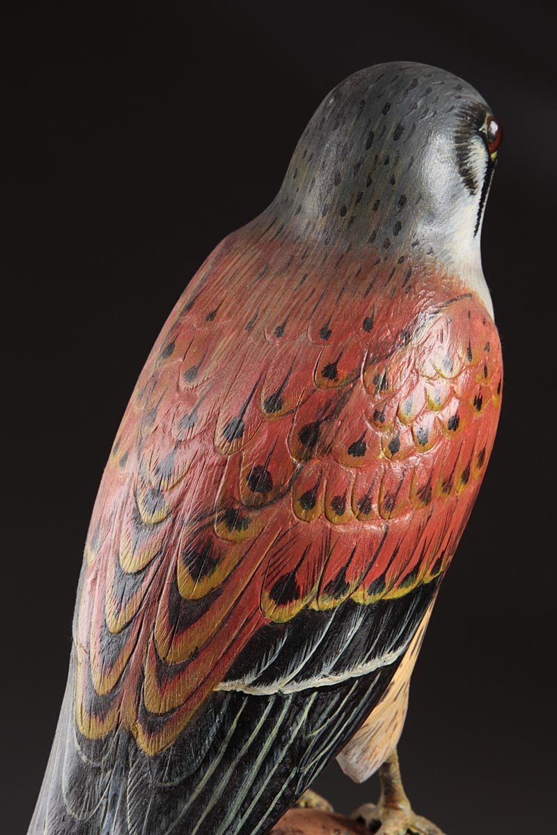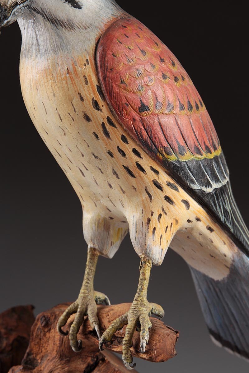 | ◆ 【石井武志 作】木彫野鳥 木彫彩色「チョウゲンボウ/長元坊」置物 天然木根台付 床置 床飾 バードカービング ◆