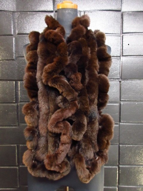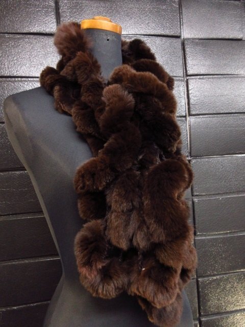 美品 リアルファー マフラー えりまきなど ブラウン ラビット?チンチラ? 長さ約117cm