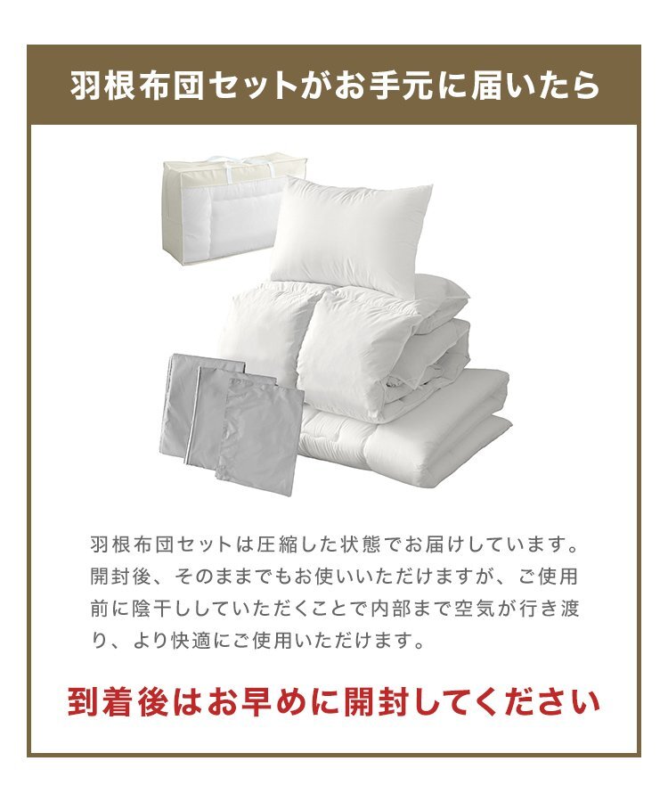 ISO9001認可工場で生産された安心の品質! 届いてすぐ使える寝具セット! 掛け布団は高級布団などにも使われるフェザーを100%使用しているので 冬場は暖かく、夏場は蒸し暑くなりにくく オールシーズン快適に過ごすことができます! 敷き布団はフローリングや畳の上に直接敷いても痛くないよう 芯のある固綿を、ふんわり柔らかな中空ポリエステル綿で サンドイッチした三層式構造を採用! 枕は中空ポリエステル綿を使用! ボリュームがあるので、しっかりと頭部を支えてくれます! \各種カバー付き!/ カバーは洗濯機で丸洗いができるので、とっても衛生的! 万が一、汚れてしまった時や何かこぼしてしまった時も安心です! すぐ使えるから、こんな方におススメ♪ ・一人暮らしや新生活を始める方 ・来客者用の布団一式を考える方 ・布団・寝具の買い替えを考える方 ・社員寮など業務用として考える方 【商品仕様】 カラー:ブラウン サイズ:セミダブル 掛布団/敷布団/枕/掛布団カバー/敷布団カバー/枕カバー/収納袋 特徴:ISO9001認可工場で生産/ 抗菌防臭加工/ファスナー仕様 《商品内容》 【掛布団】 サイズ(約):幅170×長さ210cm 生地:フェザー、ポリエステル 充填量:2.5kg 【敷布団】 サイズ(約):幅120×長さ200cm 表生地:ポリエステル100% 巻き綿:ポリエステル100% 固綿:ポリエステル100% 【枕】 サイズ(約):幅63×奥行43cm 生地:中空ポリエステル綿 【カバー各種】 生地:ポリエステル 【収納ケースサイズ】 サイズ:(約)幅120×奥行35×高さ65cm 【注意事項】 ・羽根は、天然素材のため、特有のにおいがございます。 洗浄は十分に行っておりますが、開梱直後や湿度・温度などの環境により 臭いを感じる場合がございますので、ご使用の前に風通しの良い場所での陰干しをお勧めいたします。 ・洗濯する際は、必ず商品に付いている洗濯表示マークをご確認ください。 ・商品は、モニターによって色合いが異なって見える場合があります。 ・仕様・デザインは改良のため予告なく変更することがあります。 |