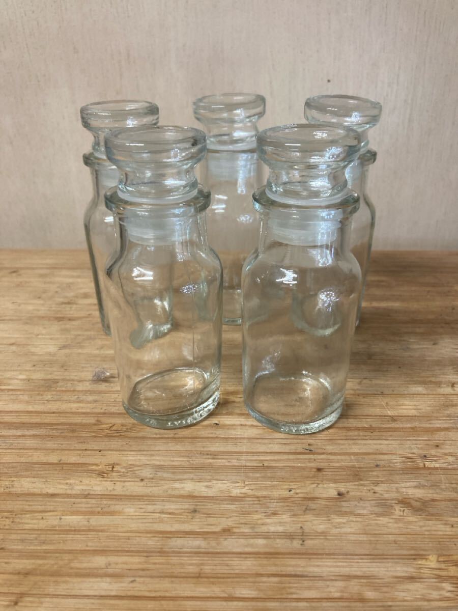 5本組 ガラス瓶 試薬瓶 アンティーク 試薬ボトル 保存瓶 標本瓶 glass medicine bottle set of 5 メディシンボトル 樹脂内蓋付き