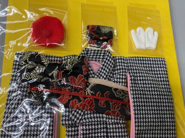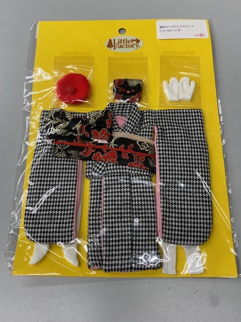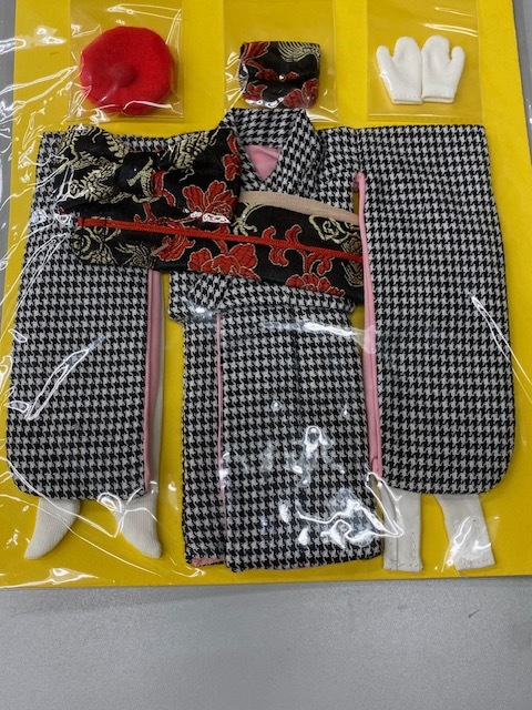 未使用 リカちゃんキャッスル  復刻版サイズドレスセット-3 着物 黒系 復刻版初代リカちゃんサイズ