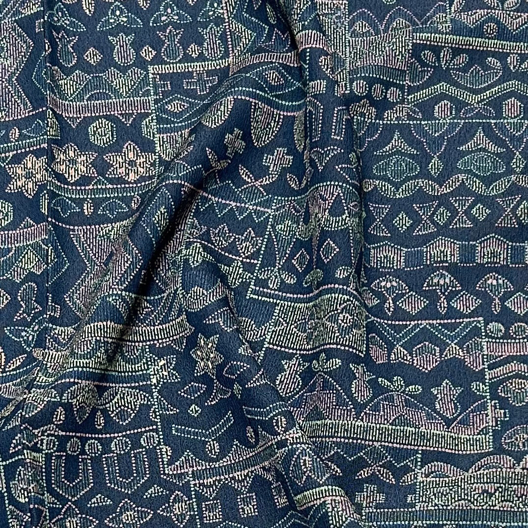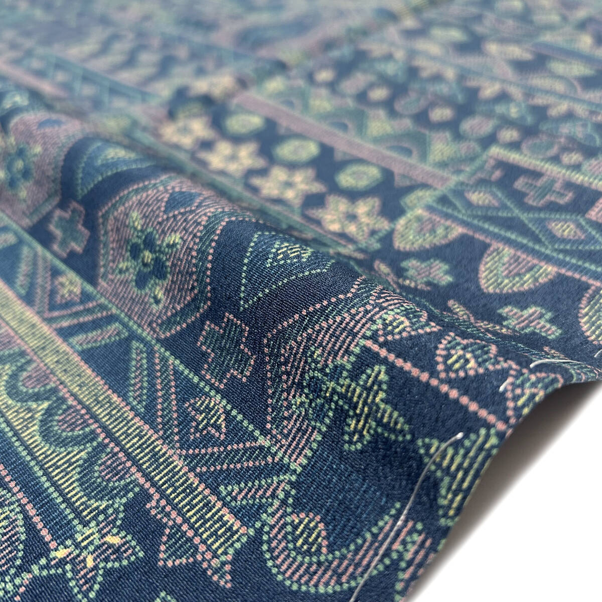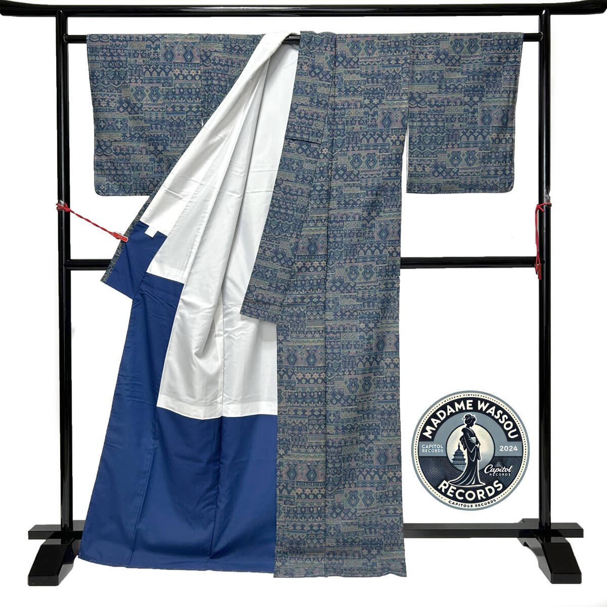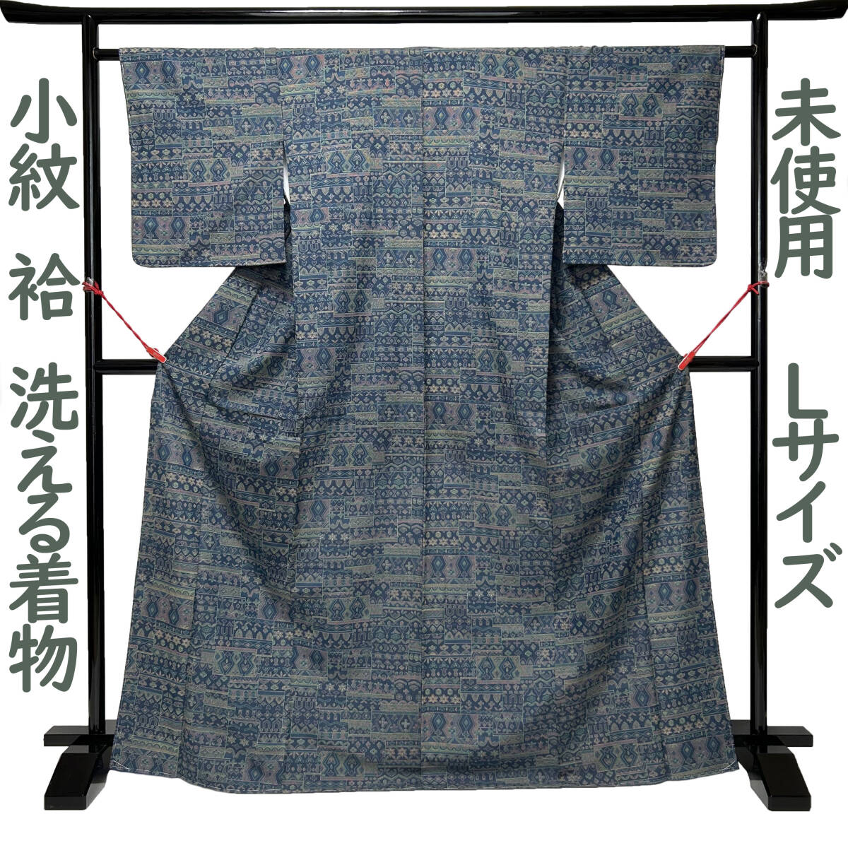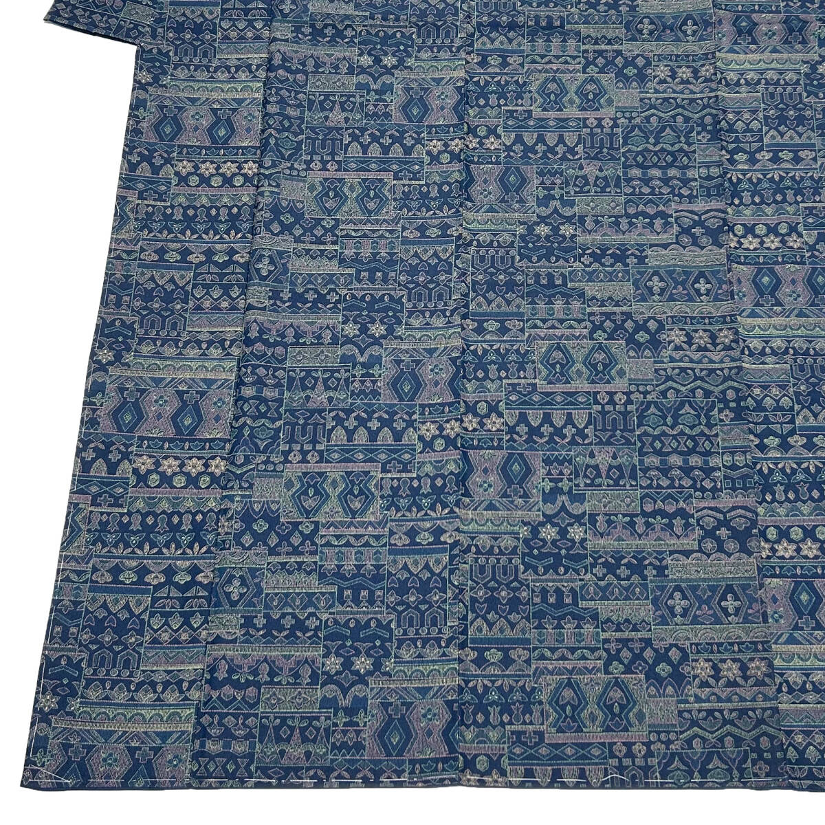 着物 小紋 洗える着物 袷 花更紗柄 裄丈66 カジュアル 未使用 濃青緑色 綺麗 中古 仕立て上がり Lサイズ MWR-No.359 29102025 マダム 和装