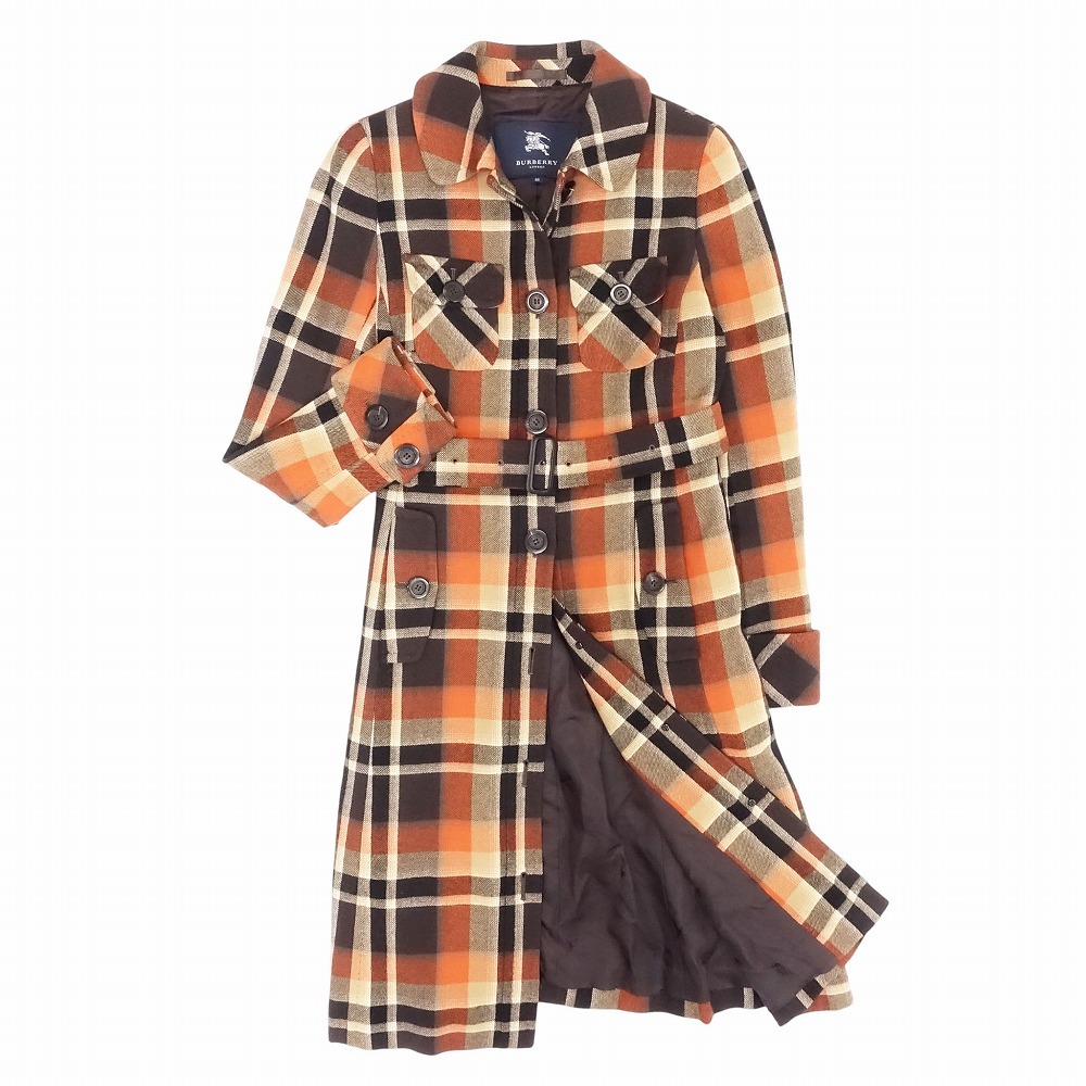 | 【美品 BURBERRY LONDON バーバリーロンドン オレンジ ノバチェック柄 ステンカラー コート ジャケット 38 M レディース】 | |