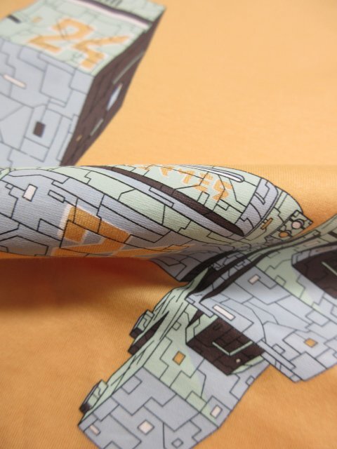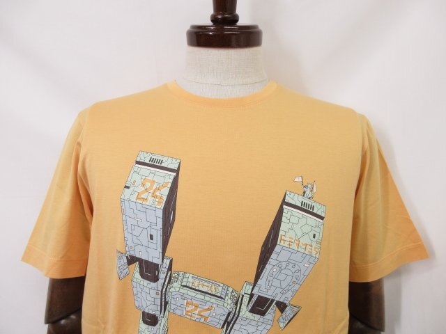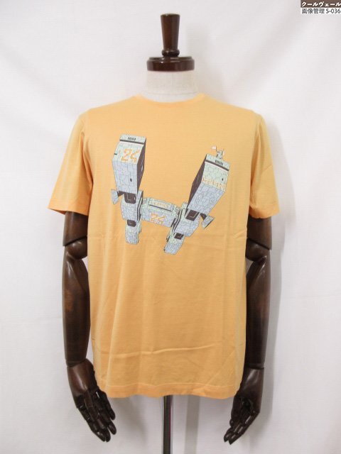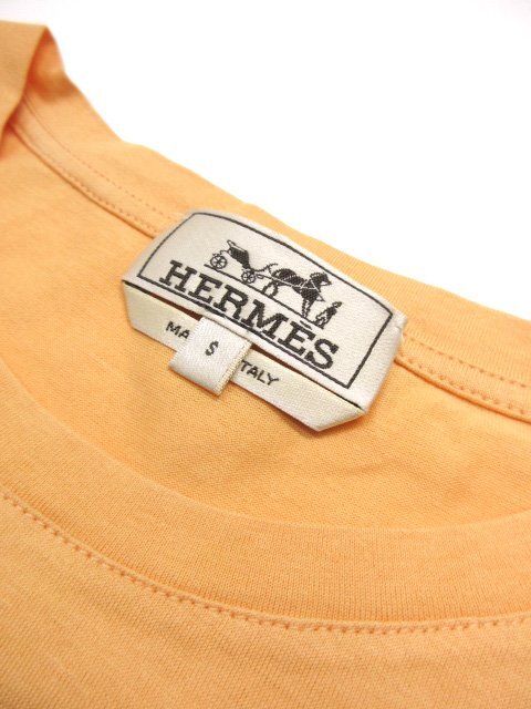 超美品【エルメス HERMES】 コットン100% プリント クルーネック半袖Tシャツ (メンズ) sizeS オレンジ系 イタリア製 ◇33MT6451◇