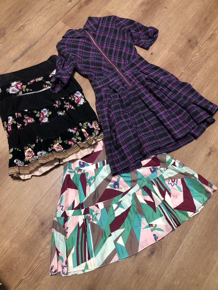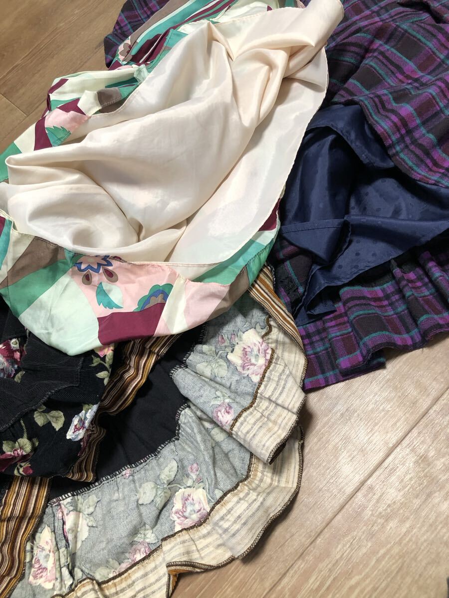 擦れや毛羽立ち、シミ、汚れ、スカートにハンガー跡等の使用感がございます。