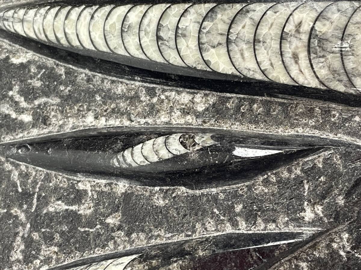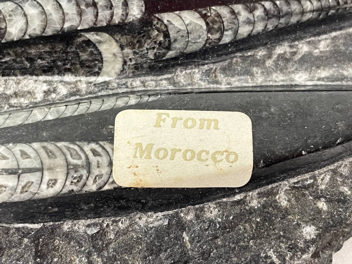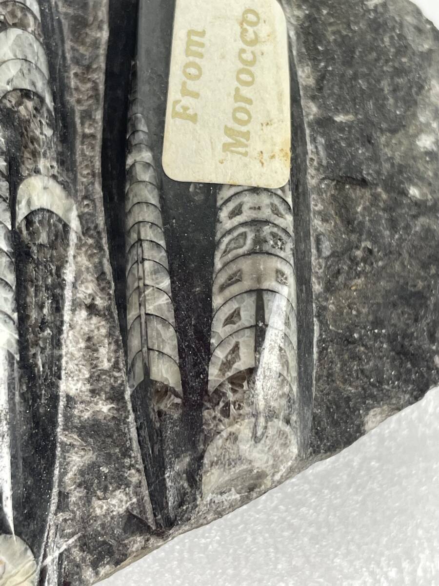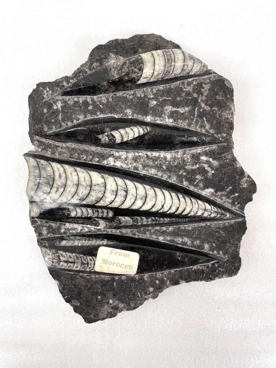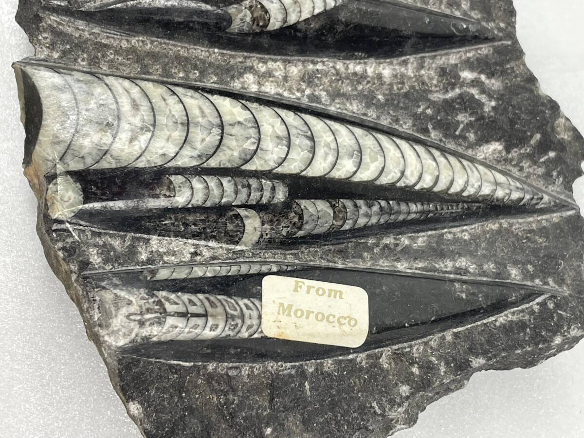化石 オルソセラス モロッコ産 直角貝 化石プレート  重量約500g 詳細不明 中古 ジャンク 現状品 返品不可