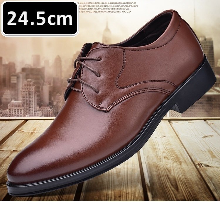メンズ ビジネス レザー シューズ ブラウン サイズ 24.5cm 革靴 靴 カジュアル 屈曲性 通勤 軽量 柔らかい 新品 【226】