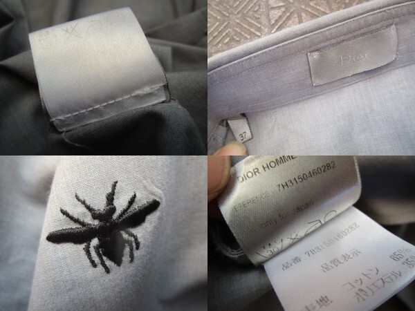 07AW 即決 Dior HOMME ディオールオム Hedi Slimane エディスリマン Navigate期 BEE刺繍 比翼仕立てシャツ 長袖ドレスシャツ 37 グレー