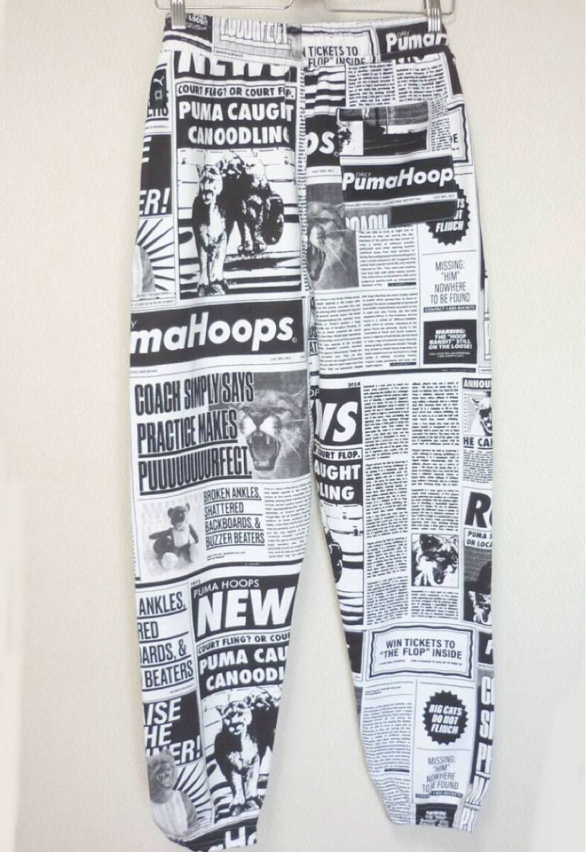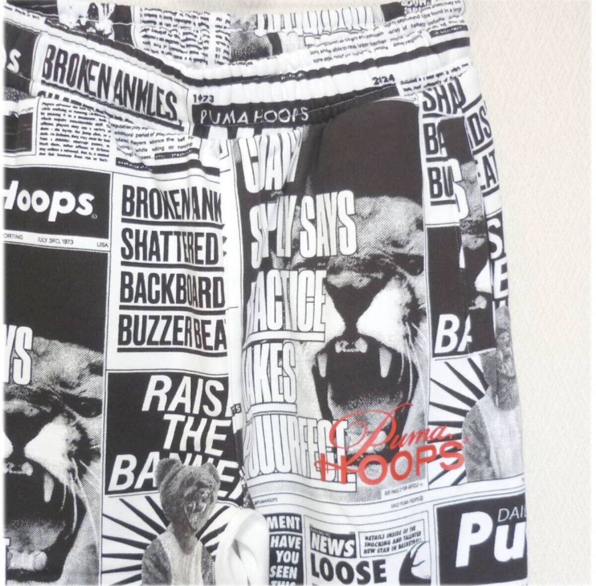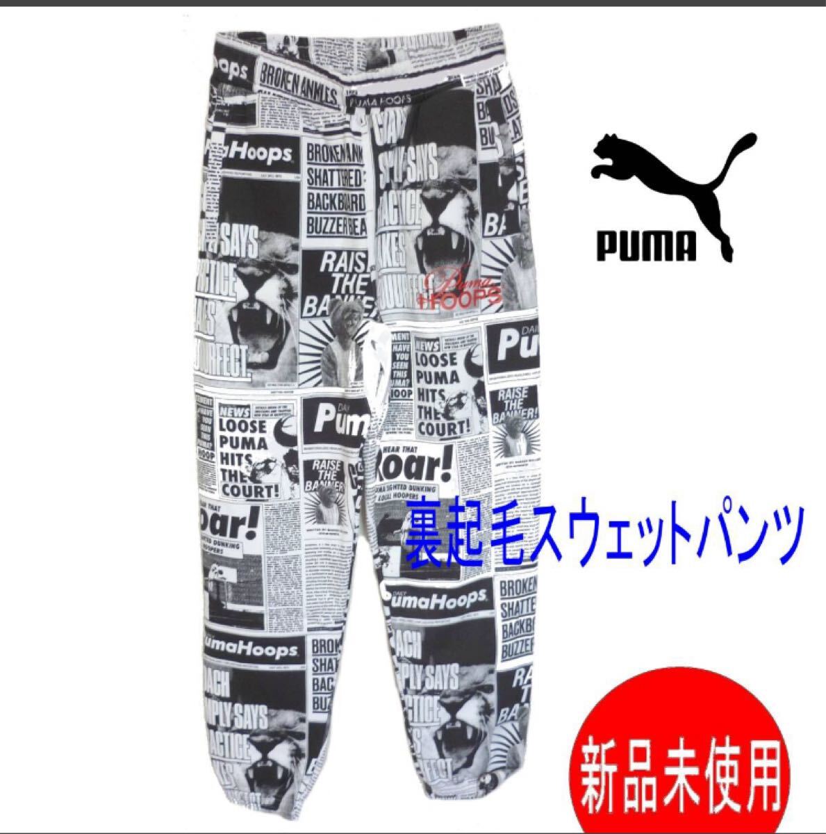 新品(メンズL相当)プーマ PUMA 白総柄 HOOPS 裏起毛 ロングパンツ スウェットパンツ グラッフィック