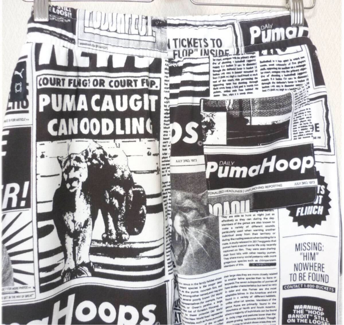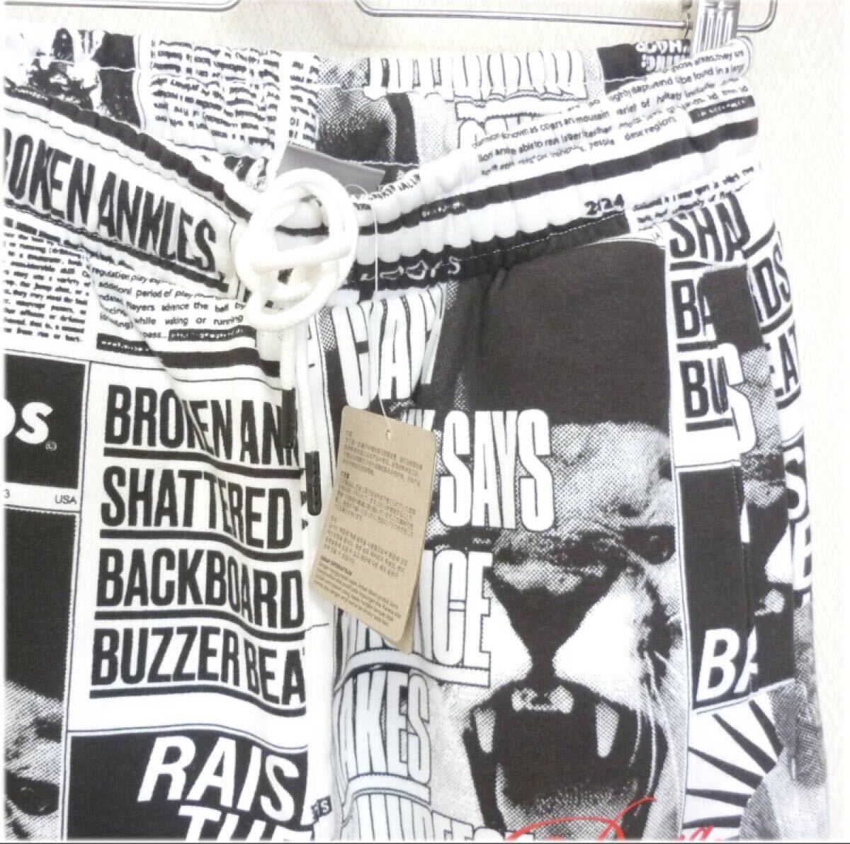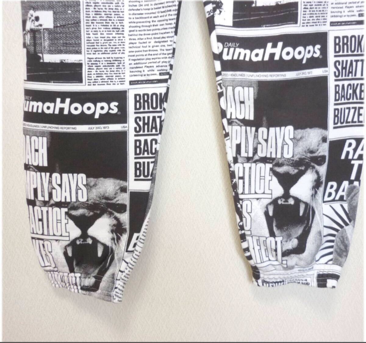 新品(メンズL相当)プーマ PUMA 白総柄 HOOPS 裏起毛 ロングパンツ スウェットパンツ グラッフィック