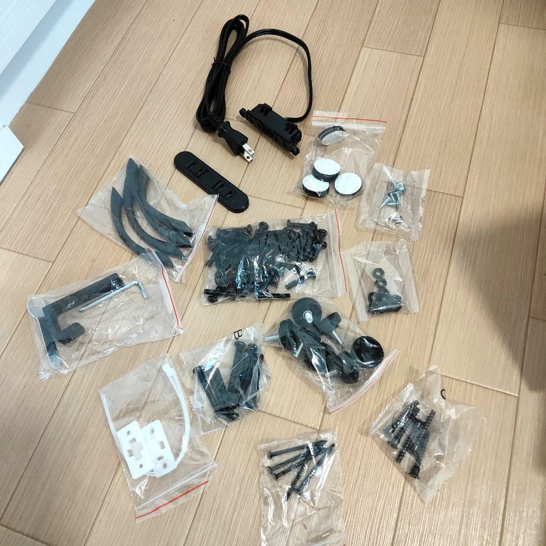 :コンセント付き、高さ調節、机の脚裏に高さ微調整ネジあり