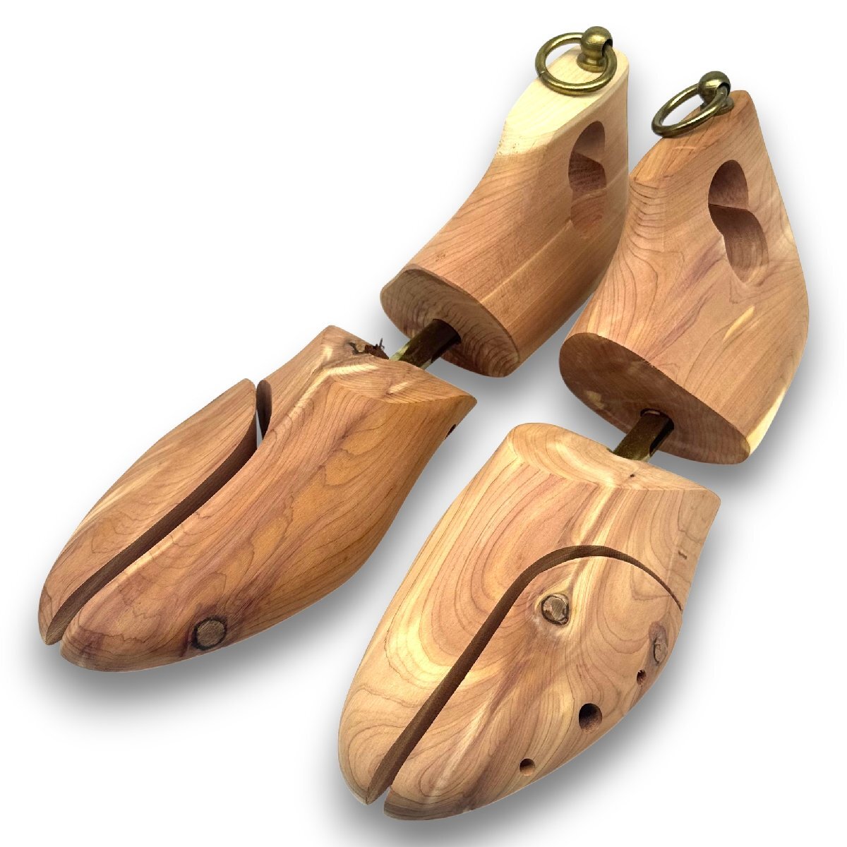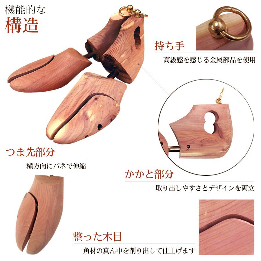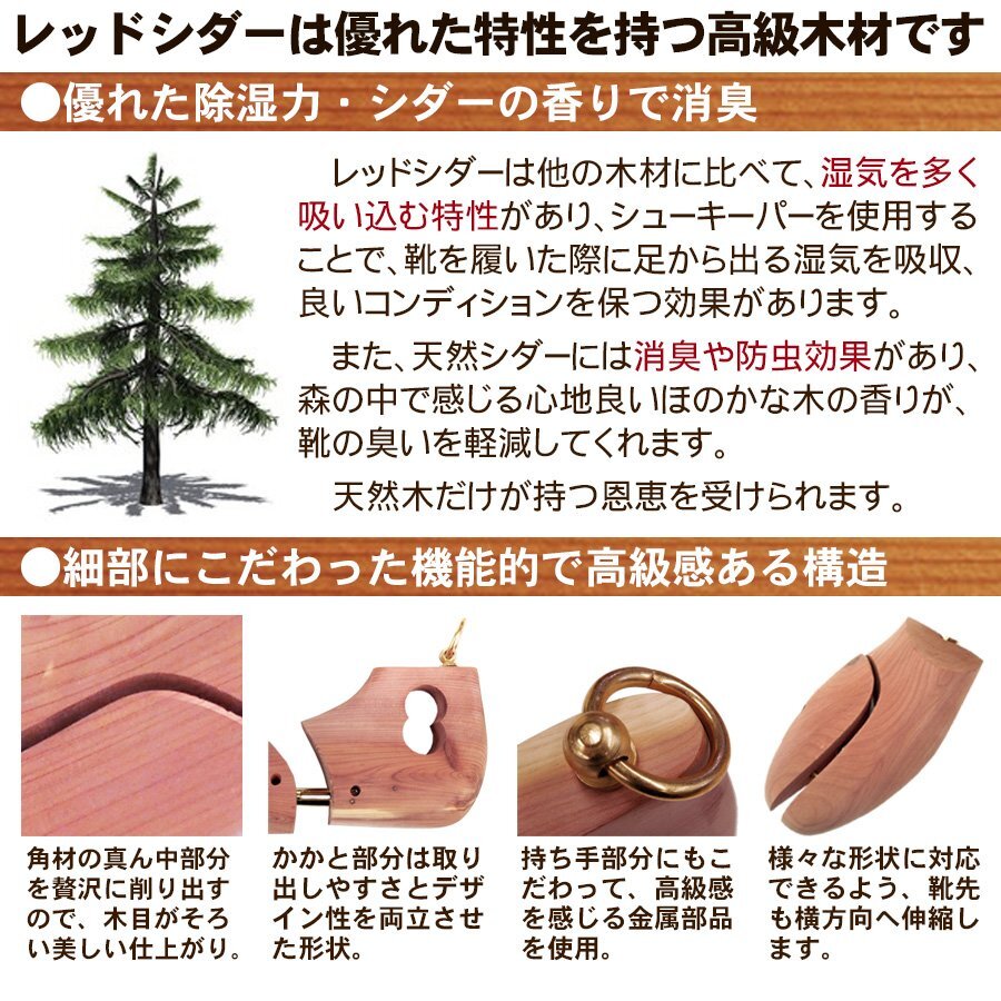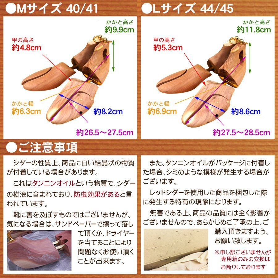 ・シダーの性質上、商品に白い結晶状の物質が付着している場合があります。これは『タンニンオイル』という物質で、シダーの樹液中の成分です。靴に害はありませんが、気になる場合はサンドペーパーで磨く、ドライヤーを当てるなどの対応で問題なくご使用頂けます。(不良品ではありません)