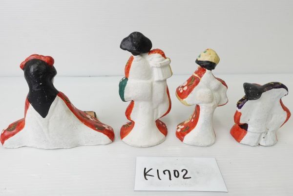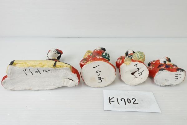 【k1702】花巻人形 花巻土人形 4体セット 江戸期 古土人形 東北地方 郷土玩具 伏見 相良 堤 希少 縁起物
